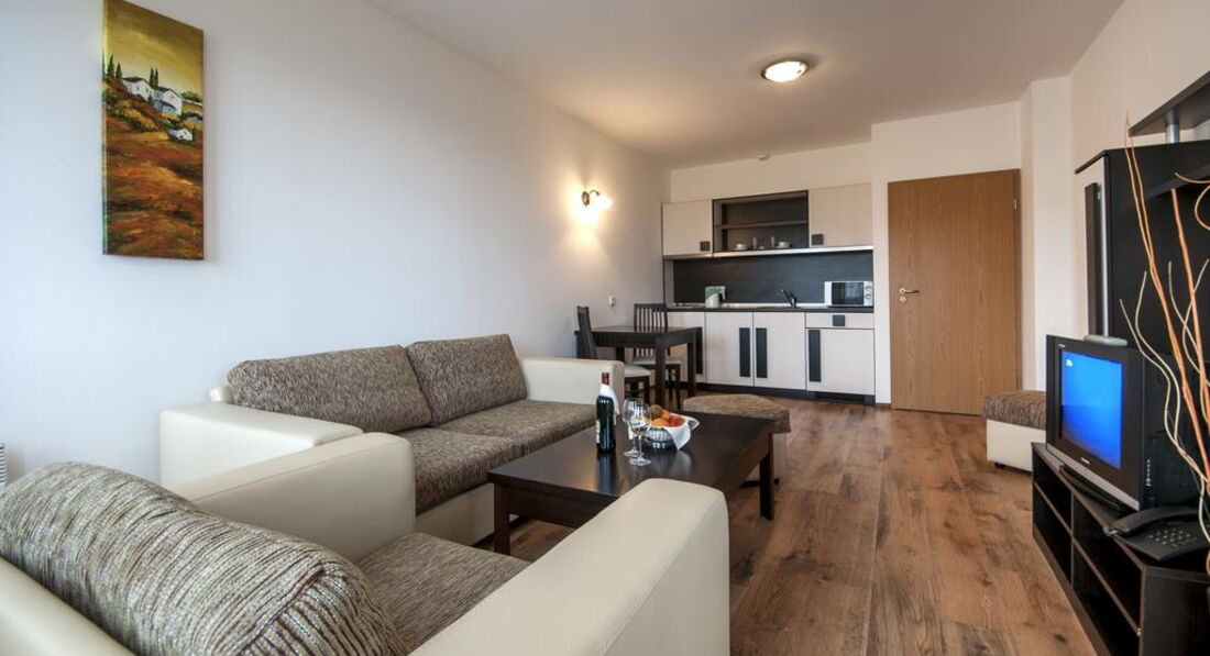 Типи номерів: Studio 2 односпальні ліжка в спальні, 1 додаткове ліжко в салоні. Apartments 1-Broom 2 односпальні ліжка в спальні, 2 односпальні ліжка в салоні. Apartments 2-Brooms 4 односпальні ліжка (по 2 – у кожній спальні), 2 односпальні ліжка в салоні.У номері: кабельне телебачення, телефон, міні-бар, душова, фен, сейф, інтернет, опалення, кухонний куточок, балкон.