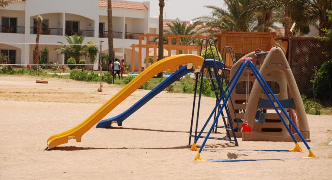 Анимацию особо не заметили, да и не искали, только были с сыном на минидиско. Для деток есть детский клуб (опять же убираются там по-египетски), пыльно. Есть небольшая детская площадка на пляже – горки и качели. Но расположена она как-то не по делу – прямо под палящим солнцем. В бассейне детском горок нет.