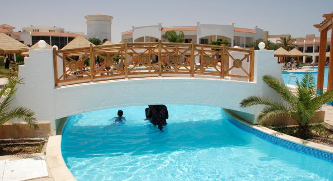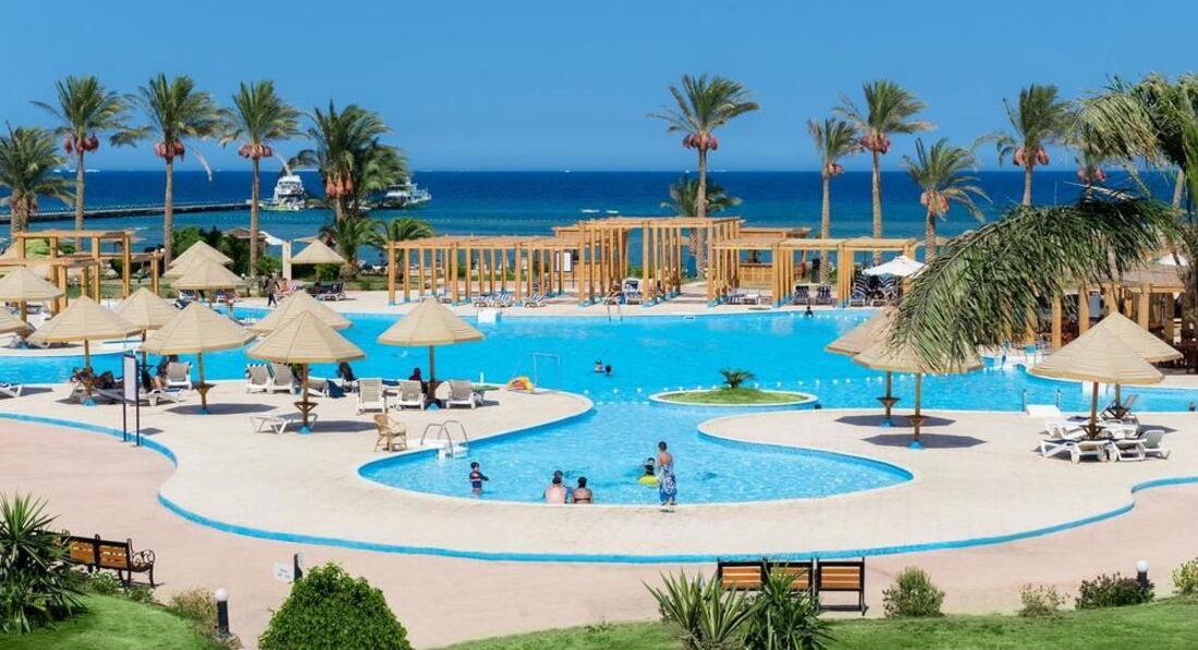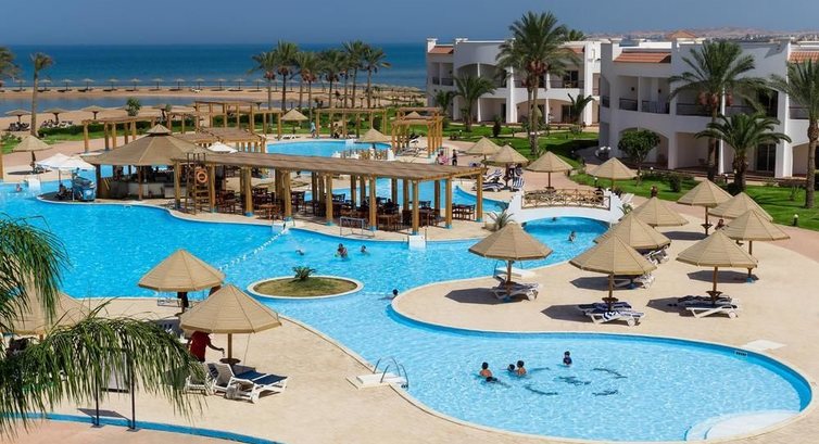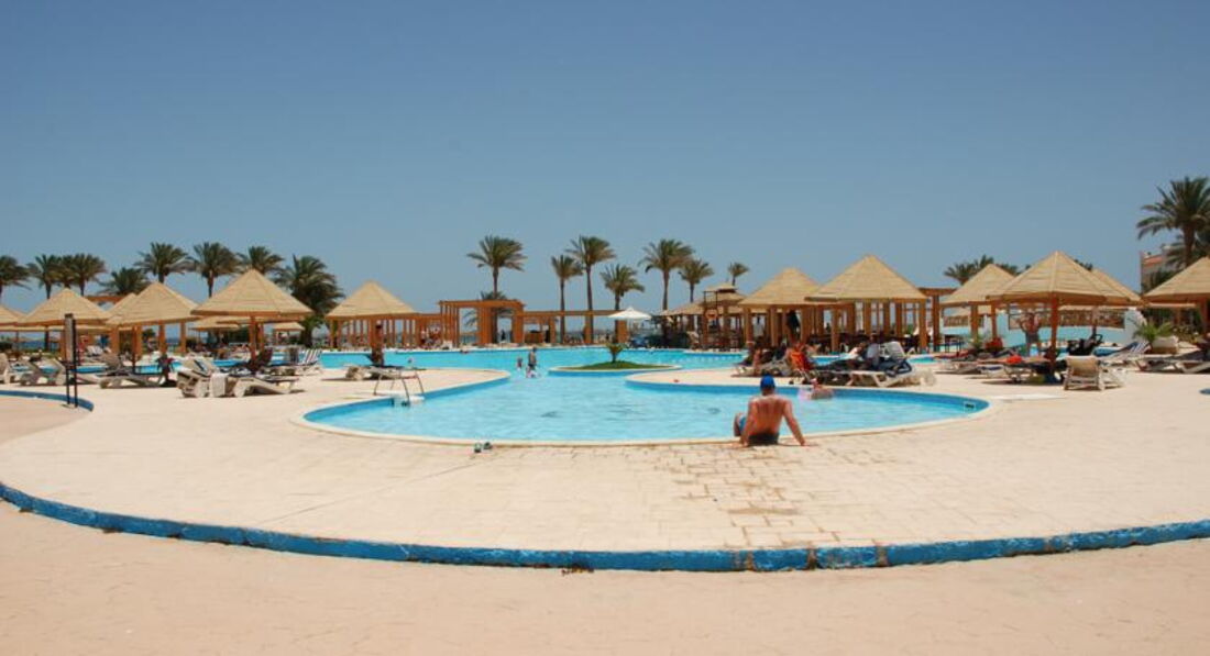 Начнем с того,что прочитала отзывы до поездки. Мнения посетителей разделились. Решили все же съездить сюда.. Купили тур все включено за 1700$ за троих на неделю. Агентство Travel House в Минске. Заселили быстро,но номер был неубранный,открыли соседний. Комната просторная,но минус в том,что очень воняло туалетом! Из крана текла рыжая вода несколько дней,а потом почище стала.Телевизор доисторический)). Полотенца в первый день принесли на всех.(ребенку 2,5 года). На следующий день и последующие полотенца только 2-для взрослых. Пляжное полотенце тоже на ребенка не выдали..,но мы просить не стали,а свое брали. Еда. Я тут читала про фрукты и ТД. Ну так вот там действительно одни апельсины ..кислые. Была клубника пару раз,но она прям как морковка хрустела и кислющая!! Остальная пища со специями местными естественно и перца хватало,так что с детьми если,то покупайте заранее в маркете еду! Наш ребенок там не ел ничего!!! Овощи были,но они на вкус ,как после заморозки. Взрослому человеку можно выбрать,что поесть. Но только если выбирать.Напитки. Естественно разбавленные соки и вино..! На рецепшн не говорят на русском. Нам предложили инглиш и дойч. Точка)).А я так надеялась на свой французский!.( Пляж. Ну так себе..хорошо. НО!!! Сезон ветров там нифига не закончен в апреле! Так что прохладно из воды выходить на такой ветер. Аниматоры работают,с этим ок. С др не поздравляют,если что)). Ну это для полноты сведений. Отель тихий,спокойный. Можно семейным и пенсионерам. Но расположен он на окраине,что и выйти некуда. Есть аптека недалеко и ещё парочка павильонов с курительными смесями,чаем и немного магнитов есть. Но мало выбора. По поводу сервиса тез тур.. нашем представителем в Хургаде был тез тур. Ноль!!!! Ни одна поездка не обошлась без происшествий!! Ни одна! На яхте на Парадиз с детьми маленькими как наш не рискуйте плыть! Просто послушайте мой совет! Безопасности ноль! На рынок там должны были свозить на местный..пообещали только для нашей семьи и больше никого. В итоге приехал автобус,(пазик))набитый людьми и нам поставили условие оставить коляску ребенка в отеле,потому что нет места в автобусе! Ну это как вам?)) Мы отказались, сказав при этом,что недовольны таким сервисом. В итоге автобус уехал,а мы оплатили такси и до ближайшего маркета поехали.ааа))! Вначале же мы прождали 20 минут этот автобус. Позвонили гиду,чтоб узнать,в чем дело. И как оказалось,они забыли про нас). Так что единственное место для посещения-это Аквариум. Там классно! В бассейне есть детская зона,но для маленьких она не подходит. Подогрева тоже нет. Территория отеля большая,красиво смотрится.