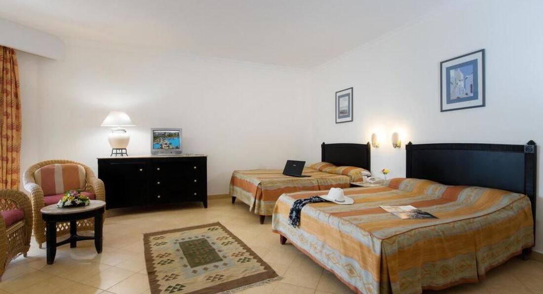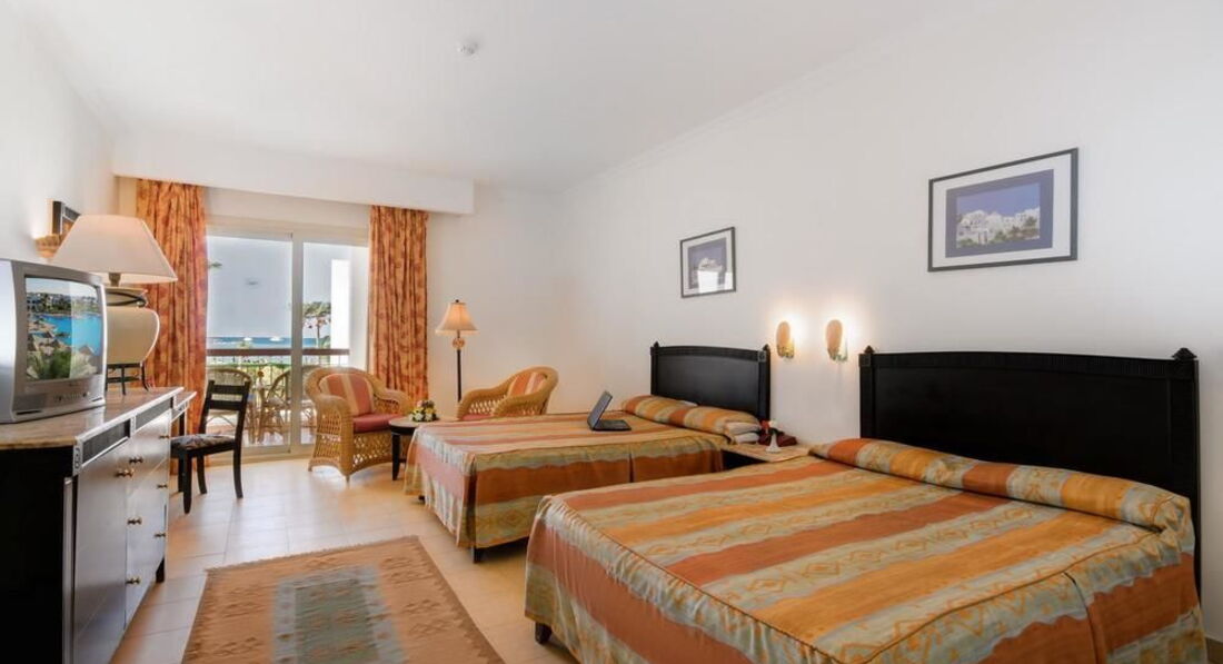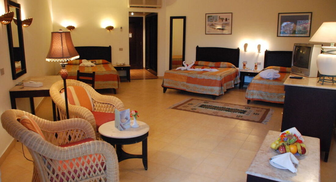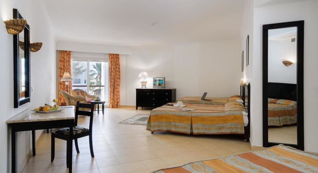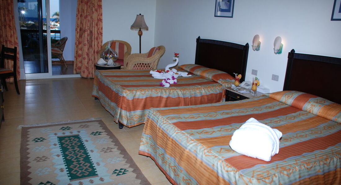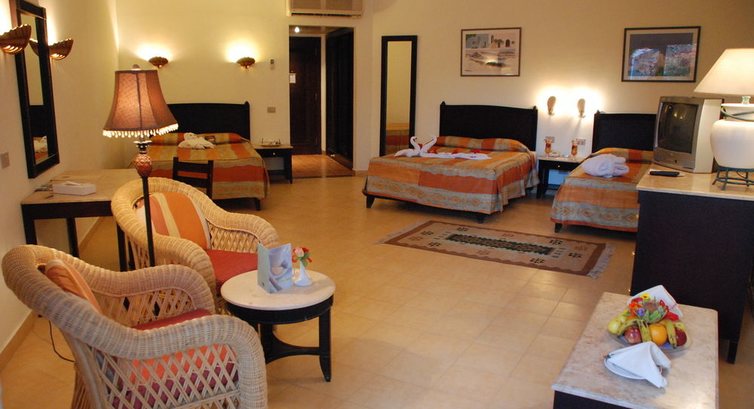 Отдыхали с семьей с 06.08 по 19.08.2012. В целом отдыхом остались довольны. По приезду заселили быстро, а за 20 долларов номер стандарт волшебным образом превратился в очень хороший 2- х комнатный джуниор сьют с двумя телевизорами, двумя сплит системами и прочими благами. Ванная комната вполне на уровне, все чисто и работало исправно (даже к моему удивлению вообще не было даже намека на грибок) вобщем зачет. Уборка в номере ежедневно, прекрасным дядечкой который производил уборку как только мы покидали номер уходя на пляж. Всегда был доброжелателен и улыбчив и все просьбы понимал с первого раза, что очень приятно. Пляж песчаный, лежаки всегда в наличии (на песке никто не згорал). Море чистое но мелковато, приходилось далеко идти на глубину, хотя для тех кто с маленькими детьми просто рай ( как большая песочница с морской водой). Бар у бассейна нормальный, пиво, водка и т.д. без ограничений. Теперь про главный ресторан "Мархаба"! Официантов не дождешься, даже прикормленых чаевыми. Столы убираются крайне вяло и за приборами приходится побегать. Еда не сильно разнообразная, но можно нарватся на тухлячок. Так например на обед были поданы протухшие крабы (с мясом черного цвета и убийственным запахом) как на это отреагировали граждане сербии, Германии, нидерландов, Польши и т.д. не знаю, но судя по их лицам им тоже не понравилось. Для разнообразие можно съездит в ТЦ Сензо молл ( не далеко, 2 мин на такси и 10 фунтов). Там мак дональдс, рыбный ресторан и мексиканский ресторан, а также аттракционы для детей и большой гипермаркет типа нашего Ашана где есть все, даже боковые соленые огурцы ( что меня очень порадовало). Также есть неплохая анимация, так что вечером скучно не было. Несмотря на косяки с едой отдых удался и мы с семьей в общем довольны! Приятного отдыха тем кто поедет в этот отель, только поаккуратней с питанием и все будет в норме!