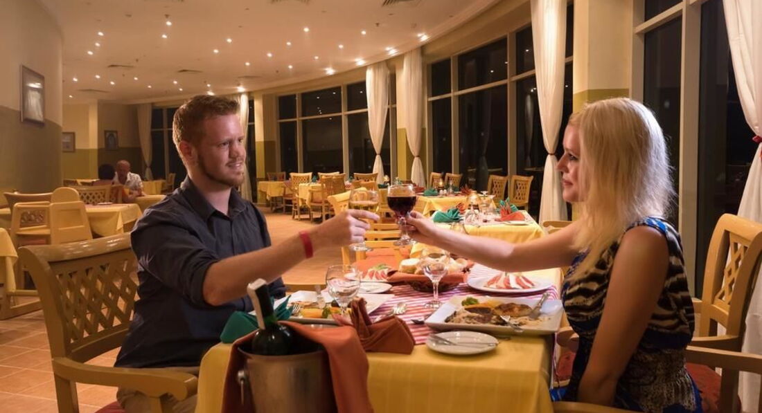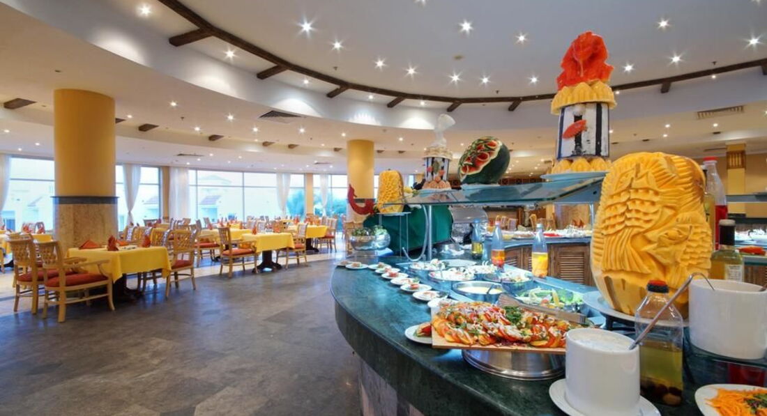 Сегодня вернулись с этого отеля.Цена была хорошая для встречи Нового года.Летели из Германии.Сам по себе отель не плохой,море рядом,солнце светит.Голодными не останетесь,но не роскошно.Мы очень полюбили супчики,всегда два вида.Один из которых суп-пюре.Иногда бывает утка,но ежедневно есть кура и говядина.Алкоголь нормальный.Из фруктов апельсины,мандарины ,и иногда дыня.Уборка в номере хорошая,независимо оставил ты чаевые или нет.Бельё нам меняли через день.Анимация три человека,вяло и скучно.Отдыхают в основном немцы и русскоговорящие немцы,поляки.Если вам нужен просто релакс,то вам сюда.