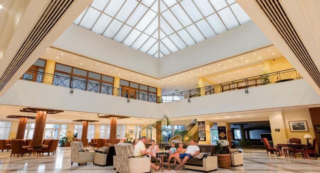 Только вернулись, отдыхали семьей с ребенком 6 лет. Отель хороший, но если вы уже были в 5* отелях, то вам может не понравится, распишу более детально. Приехали мы в 11 утра, нас сразу поселили в хороший, огромный номер с видом на море без каких либо доплат, все было рабочее, мебель старая, прилично потертая, но матрасы новые, удобные, ванная тоже требует ремонта, но все чистое без пылинки. Попросили чайник в номер, также принесли. Уборка ежедневно, но мы пару раз отказывались, так как в номере практически не были, при этом нас постоянно спрашивали нужно ли чтото. Сама территория ухоженная, чистая, за этим очень следят. В центральном холле, в ресторане, кафе мебель везде также давно требует замены. Пляж большой, всем всегда хватало шезлонгов. Заход в море песчаный, пологий, для деток самое то, для любителей глубины есть понтон. Активная анимация, постоянно завлекают в какие то игры, активности. Бассейн один, но он очень большой и с разными глубинами от 55см до 160см. Что касается питания - готовят вкусно, но без особого разнообразия, всегда есть мясо, рыба, овощи, фрукты, также всегда есть диетический стол для деток. Выпечки, десертов также хватает. Алкоголь местный ужасный, как обычно)) пиво нормальное)). В отеле очень много немцев, чехов, на выходных было также много местных, русскоязычных было всего пару семей. Практически весь персонал знает русский и английский, все сотрудники очень хорошо выполняют свои обязанности.