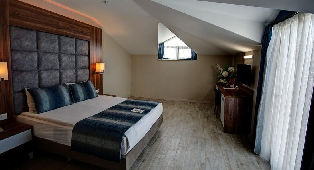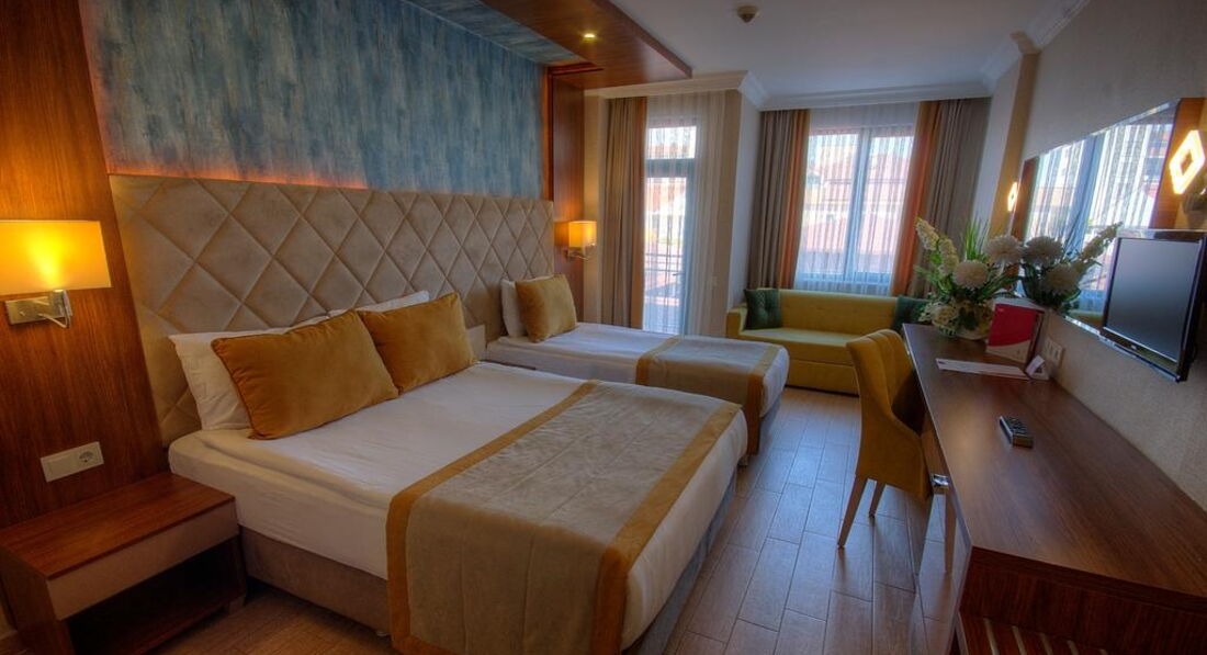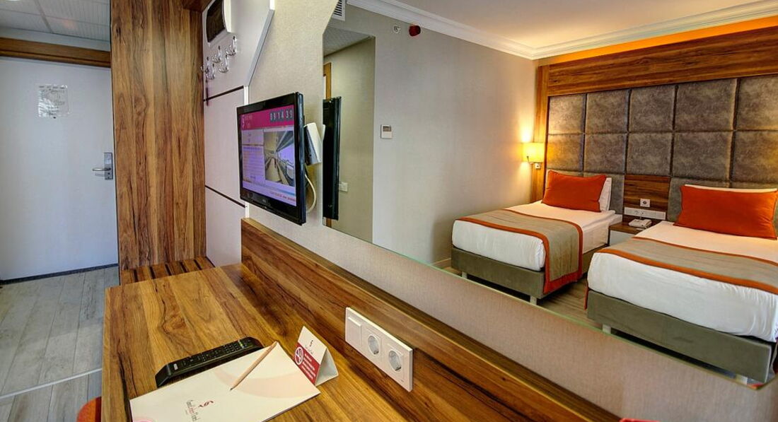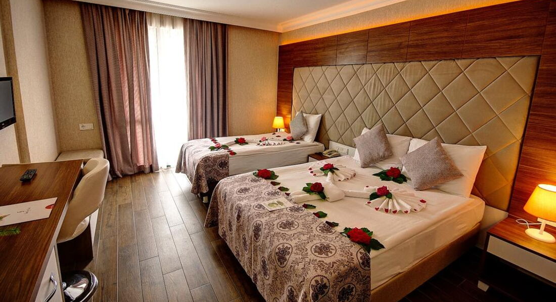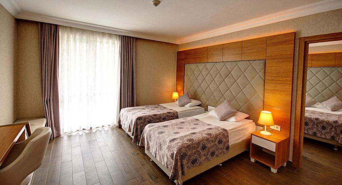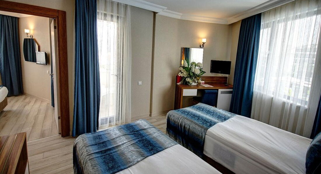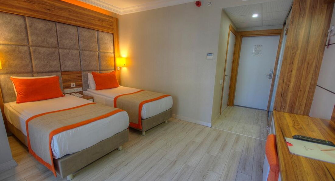 Всю историю разбирательств и переговоров с туорператором пересказывать не буду, итог был таков: да, в отеле действительно есть два типа фэмили рум, но у туроператора это на сайте указано не было. Указано было описание только двухкомнатного номера, которым я и руководствовалась при бронировании. Это все равно как ценник с неправильной ценой в магазине, когда подходишь на кассу, а тебе говорят: "ой, извините, тут неправильно написано, вы или берите товар похуже за эту цену, или платите в два раза дороже". В России в магазинах продавец обязан продать товар за ту цену, что была указана на ценнике. В Турции, пользуясь тем, что нам некуда деваться, нас просто заселили в однокомнатный номер и быстренько поменяли информацию на сайте, указав уже два различных типа "фэмили рум". Все это значительно отравило нам первые два-три дня пребывания в отеле из всего-то 9. И хотя это полностью и целиком вина "Анекс-тура" (который теперь у нас в черном списке туроператоров при выборе отдыха), отелю за размещение ставлю "3" по той причине, что изначально и администратор пытался нас заселить даже не в фэмили с двухъярусной кроватью (который все же попросторней эконома и стандарта), а в натуральный трехместный эконом. И при этом упирался, что у нас указан трехместный номер, и лишь услышав от меня, что я понимаю, что такое "bunk bed" , показал все-таки номер с двухъярусной кроватью.Вдобавок, с препаршивым видом на крышу рядом стоящего здания и окна напротив(