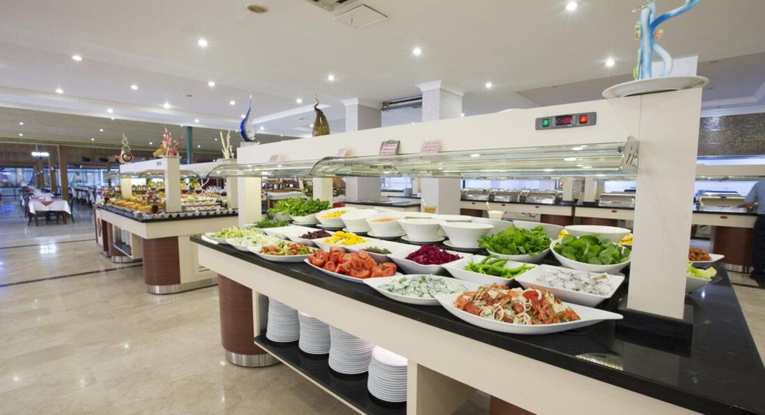 РЕСТОРАН И ПИТАНИЕ: в отеле один большой ресторан, отличная кухня, по кр мере для по сути четверки точно, все свежее, всего достаточно , ну по кр мере было, салатное меню - турецкие варианты, европейские, горячее рыба,мясо, гарниры, пиццы, выпечка, фрукты апельсины, яблоки, сумашедше вкусные грейпфруты ( особенно вкусно их к пирожным мммм) , клубника и дыня бывала в фруктовых нарезках, хотели черешни и клубники - брали на рынке в Манавгате 6 лир за кг, за пару раз наелись . Ресторан чисты так же ка ки отель. Отдельно спасибо шеф-повару, у него всегда все под контролем, он всегда выходит в зал, все контролирует. Узнаете его по высоченному головному убору) Полагаю хороший так же менеджер, все повара и обслуживающий персонал отлично варит-парит , бегает, меняет блюда. По поводу чистоты - очень важно для меня - все повара были в головных уборах и в перчатках!! в египте так часто насмотрелась на поваров, у которых пот капает , пока они пиццу пекут, и руки мммм перчаток не всегда видели)) что Турция очень порадовала в который раз. Детское меню - к сожалению наверное не так обильно, каши точно не было, овсянка была один раз, это не овсянка, конечно. Есть пюре, однозначно хорошее. Ну , тефтельки тоже по сути всегда при желании можно было найти. Ребенок уже практически взрослый, и у детей старше 4-5 лет меню однозначно всех ОДНО! картошка фри и кетчуп-соус вкуснячий, они все с такими тарелками и ходят) с той лишь разницей, успел родитель подкинуть мяса или нет на тарелочку. Ну и отдельная песня кондитерским изделиям. Суфле реально очень вкусные, есть просто настоящие такие какие должны быть в хороших кофейнях. Торты мммм. Банановый, залитый карамелью, с прослойками ммм, умру сейчас даже пока пишу)) Есть очень вкусные пирожные, вычислить можно только методом проб. Мне повезло. Были подруги. Посоветовали какие именно. Иначе прощай фигура надолго было бы точно. Все эти впечатления при условии, что я вообще не люблю сладкое! Да, это правда)! Для меня лучший торт - это мясо.