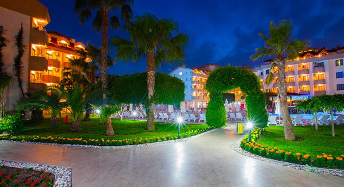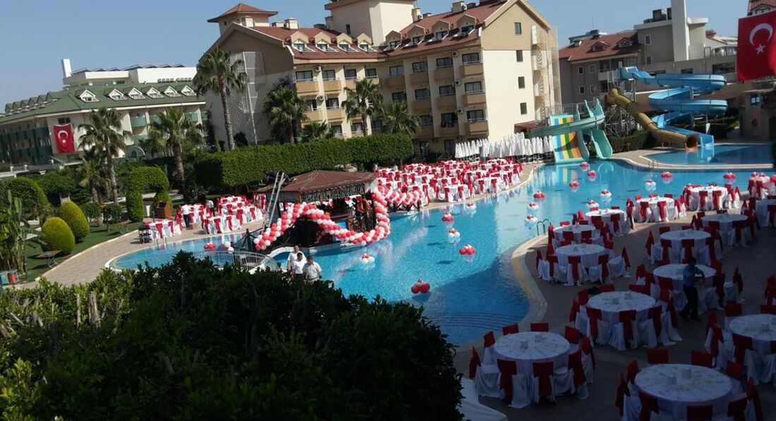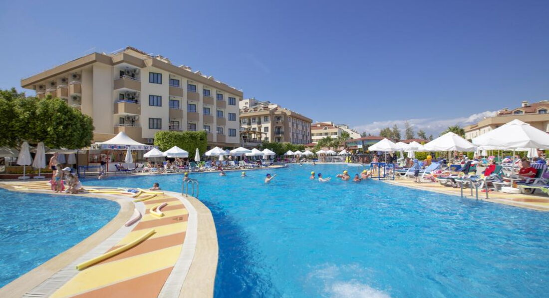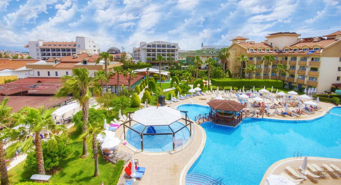 Отдыхали с мужем в конце июня. Это наш первый выезд, поэтому сравнить не с чем. Но свои четыре звезды отель полностью заслуживает, отдыхали мы с комфортом. Большая красивая ухоженная территория, везде всегда чисто и уютно как то. Нас заселили в номер 2201 . Он большего размера , чем стандарт и со свежим ремонтом. Вида из окна там нет, окно выходит на стену, но зато там всегда тихо, музыка с дискотеки и анимации нас не беспокоила, если вдруг хотелось уйти спать пораньше. Уборка номере и замена белья полотенец и воды каждый день. В ресторане огромный выбор блюд, голодным не останешься)))),арбузы,дыни, апельсины и яблоки в неограниченном количестве,иногда были персики, не всегда спелые. Хотелось бы клубники и черешни, но наверное уже был не сезон. Отдельно хочется отметить анимацию. В течение дня проводится много всяких игр и конкурсов, скучать не приходится, но аниматоры говорят на турецком и немецком языках, как и весь персонал и большинство отдыхающих в этом отеле. Мы были очень рады, когда среди аниматоров появилась русская девушка Даша, очень милая и приятная в общении. Для русскоязычных отдыхающих она спасение))) и проводит замечательную утреннюю аквааэробику, заряжает позитивом на весь день. До пляжа идти далековато и море мелкое, до глубины нужно брести по колено метров 50. На пляже тоже есть ресторан в котором можно пообедать и до вечера не возвращаться в отель. Тем более что на пляже тоже есть чем заняться. Есть несколько волейбольных площадок и площадка для игры в бочча. В общем отель оставил только приятные впечатления. Единственно, хотелось бы, чтобы на ресепшене постоянно находился бы человек, говорящий на русском языке.