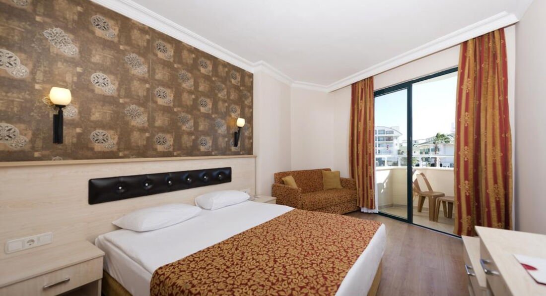 Находились в отельчике с 23,06-3,07 2017! Все отзывы о номерах и отдаленности моря ПРАВДА! У нас заявлен номер фемели 32 кв.м.По факту 12 кв.м на 4-х человек! При заселении требовали доплату 35 евро сутки ! Как позже выяснилось,в данном отеле все номера стандарт,а под крышей эконом! Других нет,описание не соответствует,всё приукрашено.Персонал обычный,прохладно относятся к русским,рецепшисты откровенно ненавидят отдыхающих.При контакте с ними,они забывают не только немецкий,но и турецкий язык! Питание на радость вегитарианцев.Мясо имеется в меню,а вот о его приготовлении и вкусовых качествах даже писать не хочется! Антисанитария полная,о одноразовых перчатках даже не слышали! Все готовят и берут руками.Уборщик в основном ресторане,подменяет бармена.При этом,во все напитки,на глазах у отдыхающих,в бокалы и стаканы доливает воду! Его не кто не смущает! Коктельные трубочки,тоже моют,но очень паршиво,Следы предыдущих напитков остаются! МОРЕ не просто далеко,в пору трансфер пускать! Очень далеко! Всё ранее уже описывали.Я Анапу видела только на фото,но чувство,что пляж Анапы перебрался в Сиде! Грязно,тесно,шумно,многолюдно до безобразия! Контингент 50% немцы,20%турки 20%украина,и нас чуть-чуть! Можно поехать в данный отель,если впервые выбрался за границу,а так за свои не малые деньги купили Анапу!