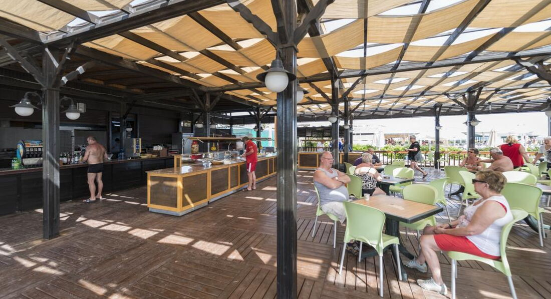 Пляж. Идти до пляжа минут 5, не больше. Песчаный, чистый. Лежаков много, натянуты тены, ближе к воде зонтики. Вход в море пологий, песочек, без валунов, отличный вариант для детей. Имеется ресторан на пляже, асортимент напитков такой же как в отельном, можно отобедать не уходя из пляжа, что очень удобнобно. Пляжные плотенца платные - 0,50 евро и пользуйся хоть весь отпуск. Замена еще 0,50 евро.