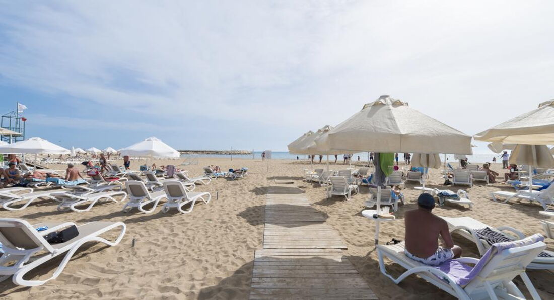Пляж у отеля собственный, песчаный в 5-10мин ходьбы по аллее, засаженной деревьями, имеется бар на пляже где можно пообедать, матрасы и лежаки бесплатно, полотенец нет. Один минус-бар на пляже закрывался примерно в 17часов. Вход в море удобен для детей, т.к. долго идти до глубины. Когда сильные волны, к берегу прибивает много водорослей. Вода была тёплая.