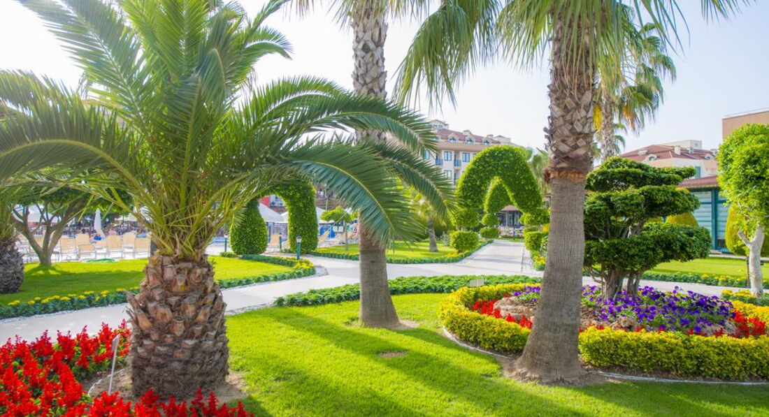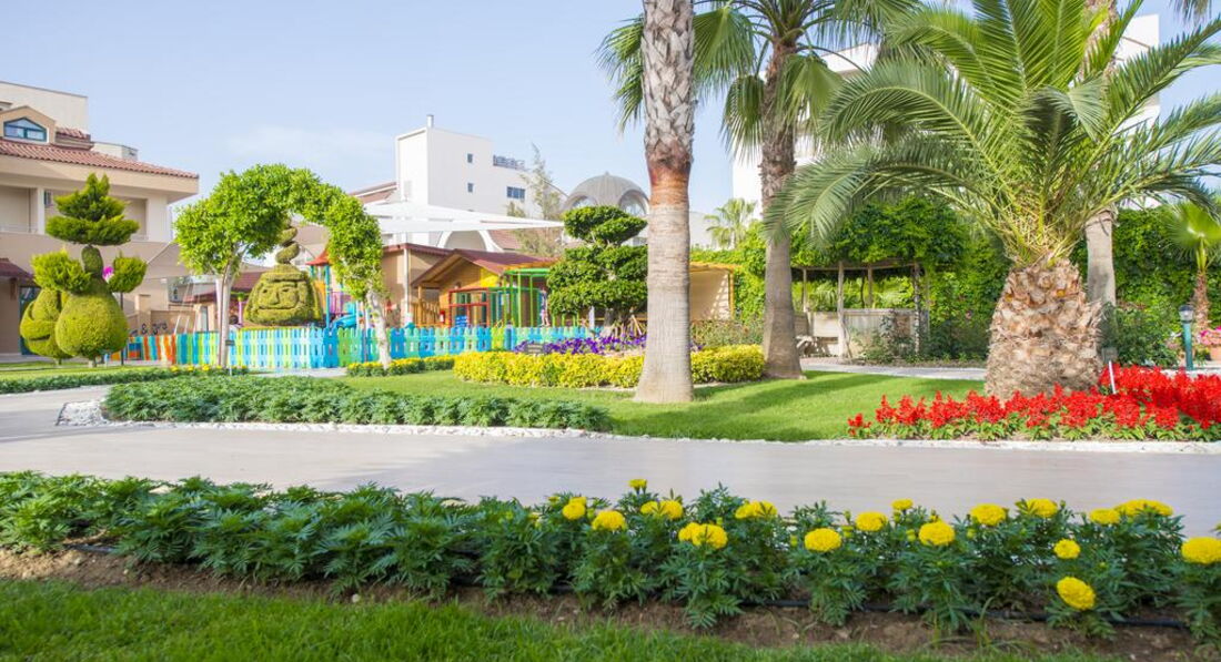 Территория отеля очень ухоженная, вы будете утопать в обилии цветов, красок, оригинально выстреженных кустов и их форм!!! Не забудьте найти "живое" название отеля на трех зеленых бочонках ))))) Отдельное СПАСИБО садовнику отеля за любовь к своему делу!!!