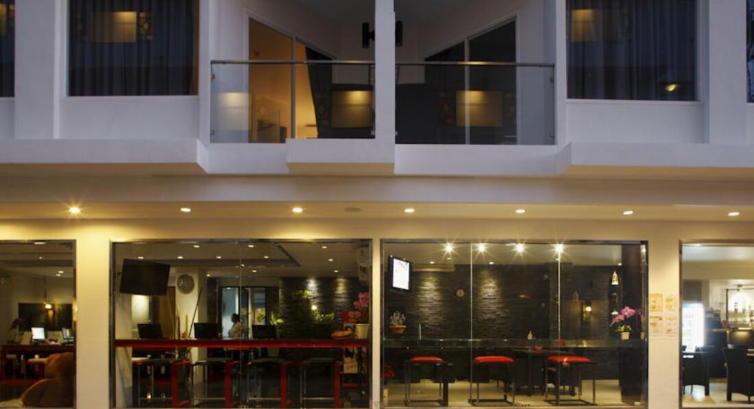 Хороший недорогой отель в самом центре пляжа Карон. Вполне приличные номера в белых тонах вид из которых с одной стороны на соседний отель ,а с другой стороны на заросший зеленью пустырь, почти джунгли, на крыше бассейн с баром (это очень удобно). Не Хилтон конечно который находится по соседству, но учитывая специфику отдыха в этой стране, когда в номере находишься только ночью, очень даже приличный во всех отношениях отель, даже скорее не отель,а гостиница так как своей территории у него нет выходиш сразу на улицу,но это ни как не мешает отдыху, а скорее наоборот ведь Таиланд это самостоятельный отдых а не отельный, чем собственно он и привлекает. Есть своя парковка для скутеров напротив входа. Очень приветливый персонал, который в меру понимания того что вы от них хотите, старается помочь вам в ваших проблемах и пожеланиях.