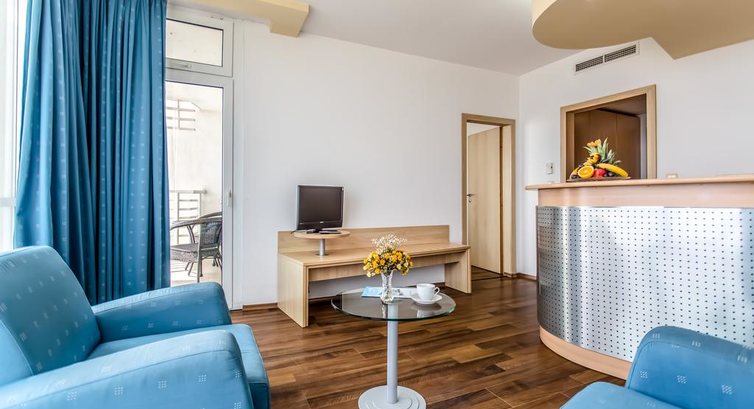 Відмінне розташування готелю – на березі моря та недалеко від центру курорту. Просторі та світлі номери. Віденська кондитерська у готелі найпопулярніша на курорті. Рекомендуємо для сімейного відпочинку.