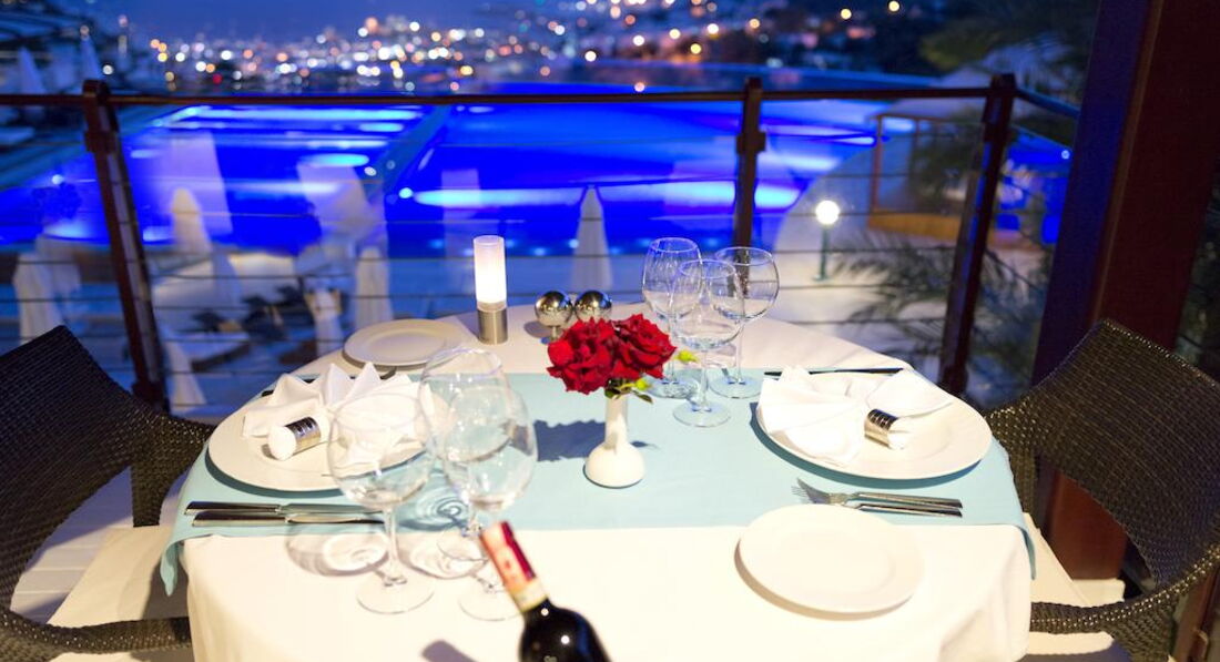 Територія та послуги: • Відкритий басейн • Дитячий басейн • Критий басейн • Ресторан A la carte • Конференц-зал (макс. 150 чол.) • Бізнес центр • Інтернет (послуги готелю) • Wi-FI • Лікар • Пральня Розваги та спорт: • Тренажерний зал • Тенісний корт (з бетонним покриттям) • Прокат тенісних ракеток та м'ячів безкоштовно, освітлення – платно • SPA-салон • Масаж (платно) • Сауна • Парна • Турецька лазня • Джакузі Для дітей: • Няня платно Живлення: • Системи живлення: BB, FB, FB+, HB Пляж: Власний, піщаний. Є пірс, шезлонги, матраци, парасольки, рушники.