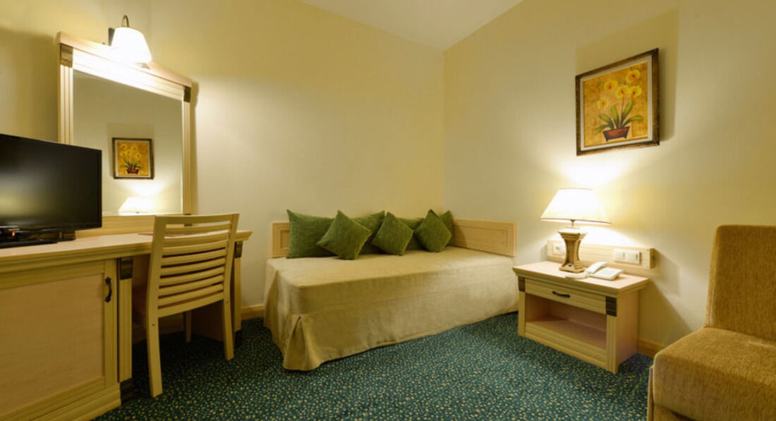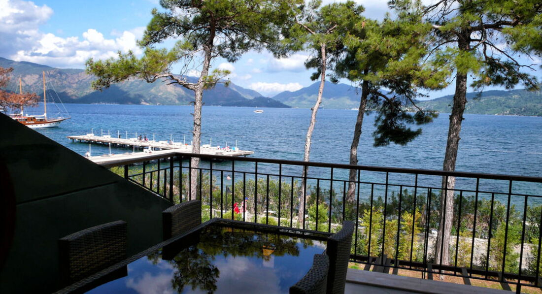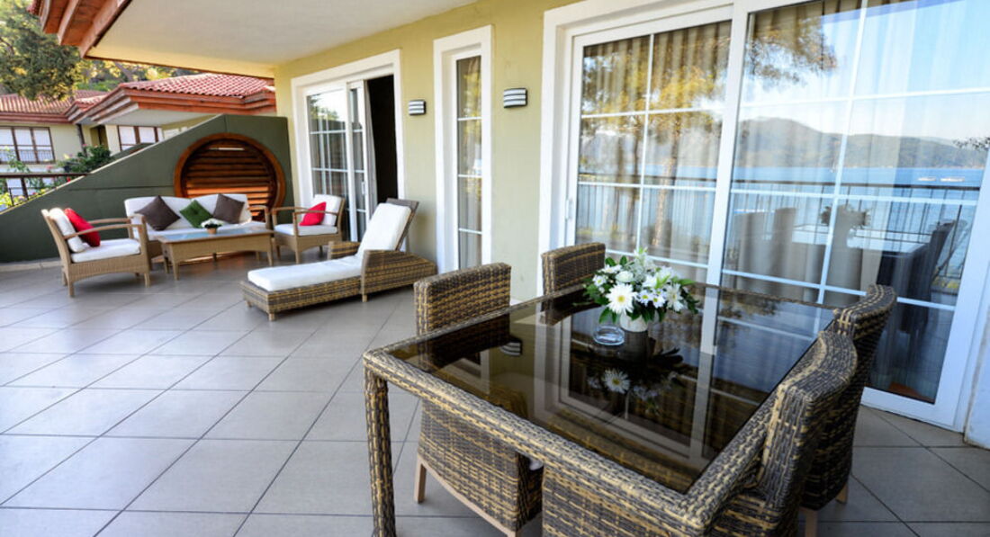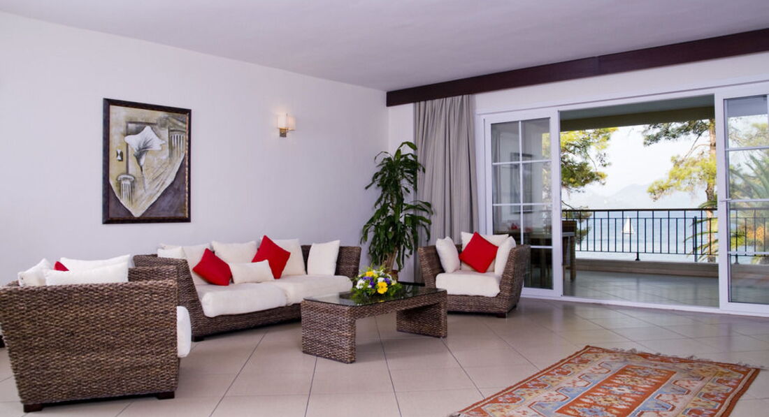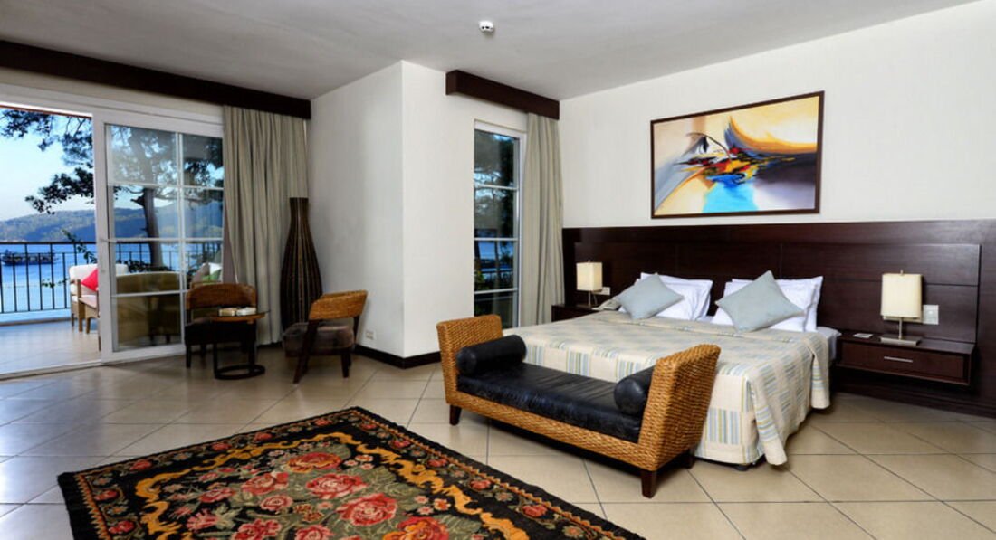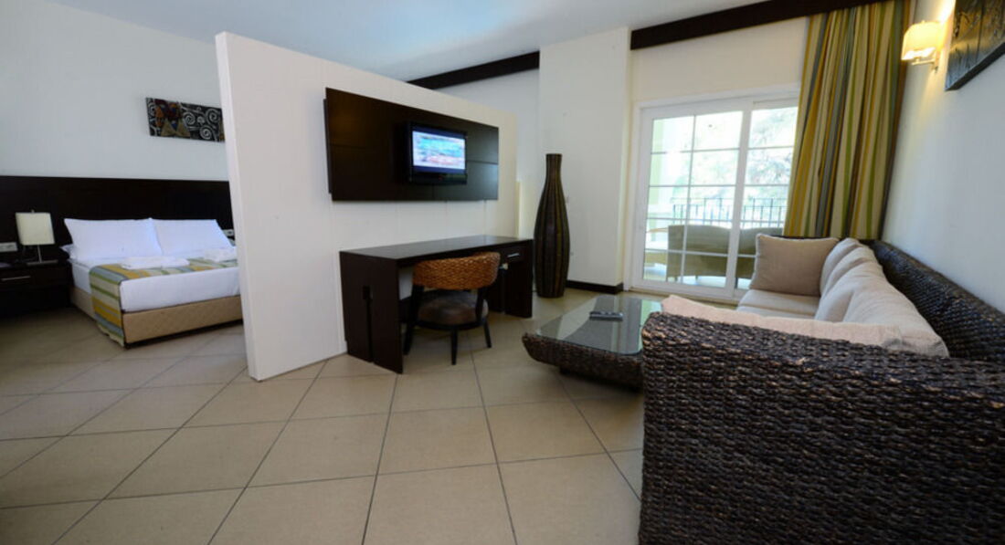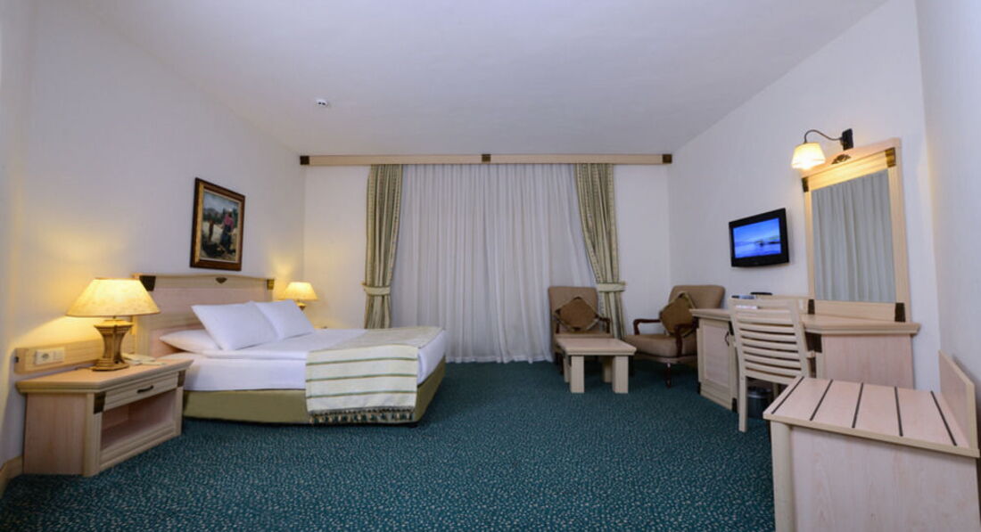 Отдыхали с друзьями, по планам должно было быть 2 стандарта, но спросив насколько мы "хорошие друзья", предложили Мэрин Сьюит, 4-х местный, 2 комнаты, огромный холл с диванами и тв, + громадная терасса с мебелью, душ/джакузи, море/пляж - через дорожку!!! Кормили на убой, 2 раза вечер морепродуктов, креветки, лангустины, крабы, правда очередь, второй раз даже не стояли... ОООчень большое разнообразие вкуснейшей, только что пожаренной рыбы, мимо карасиков и окуньков проходили мимо..., фреш, кофе, чай, сладости,.... Брали велосипеды - ездили в Ичмелер. В барах присутствует много иностранных алконапитков! Все очень понравилось!