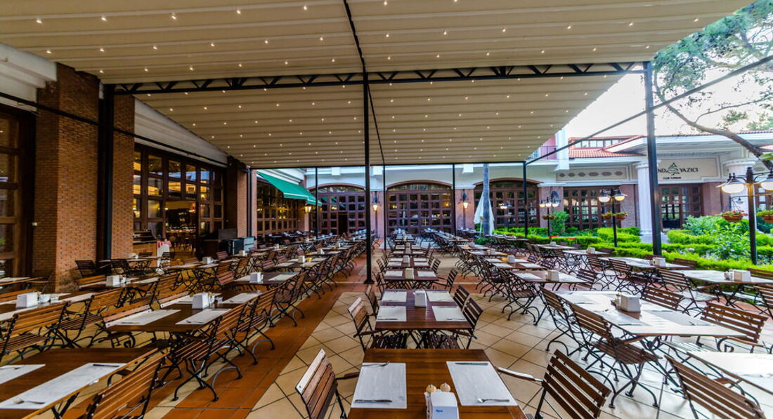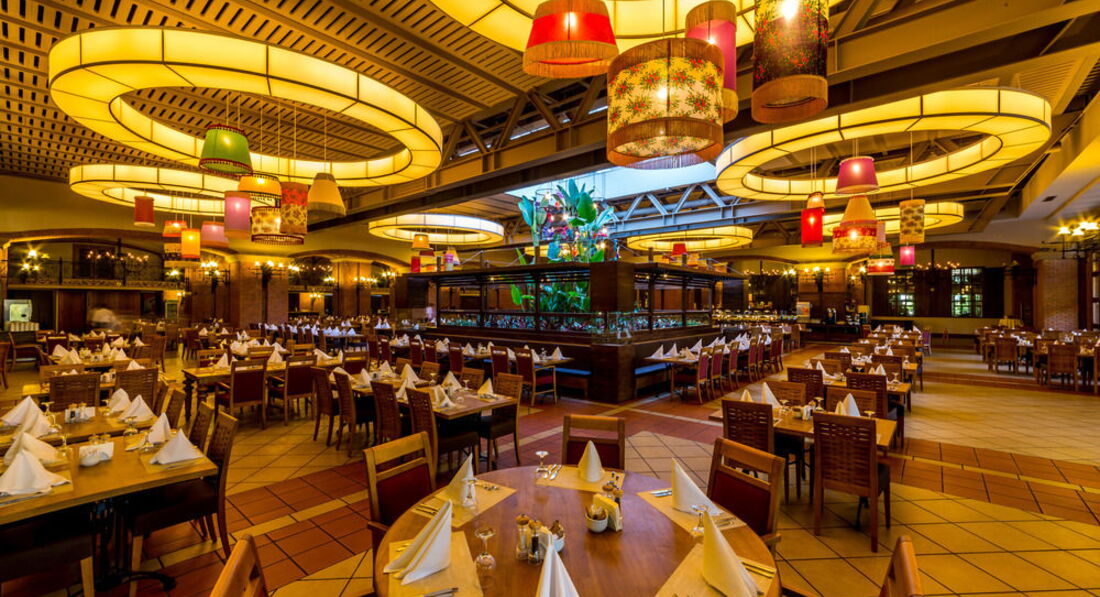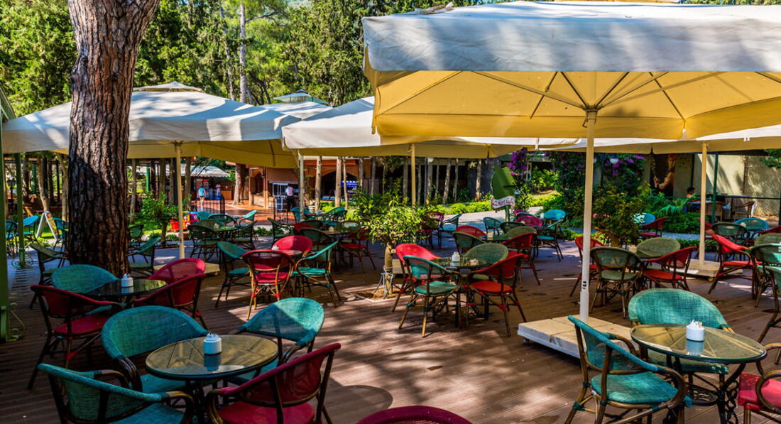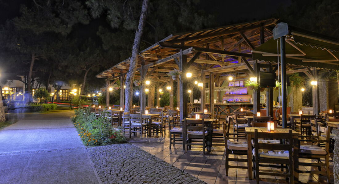 Бари та ресторани: головний ресторан розрахований на 900 осіб (критий, літня тераса, дитяче меню, дитячі стільці), лобі-бар (24 години), бар біля басейну (10:00-00:30), бар на пляжі (10: 00-00:30), диско-бар (23:00-01:00), Cafe Turk (10:00-23:00) та ін. 3 ресторани A la Carte: турецький, італійський, рибний - платно, за попередньою резервації.