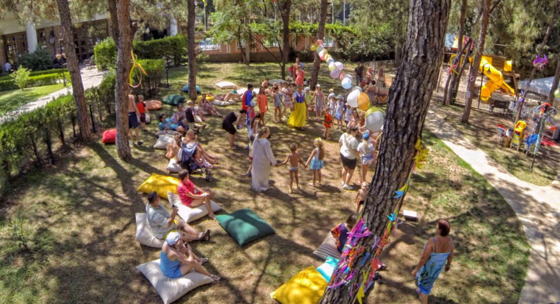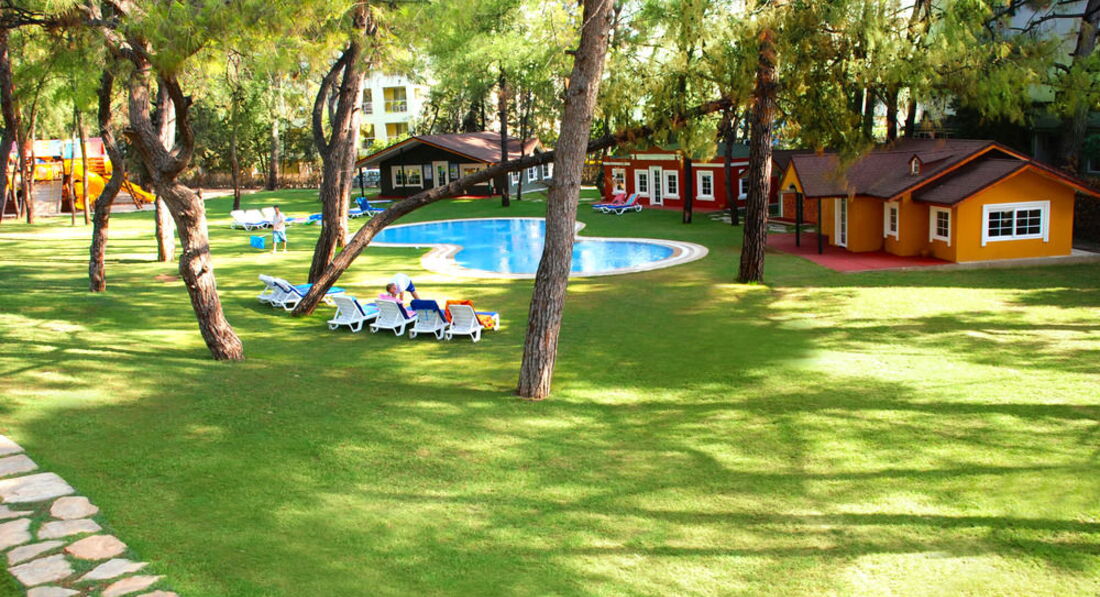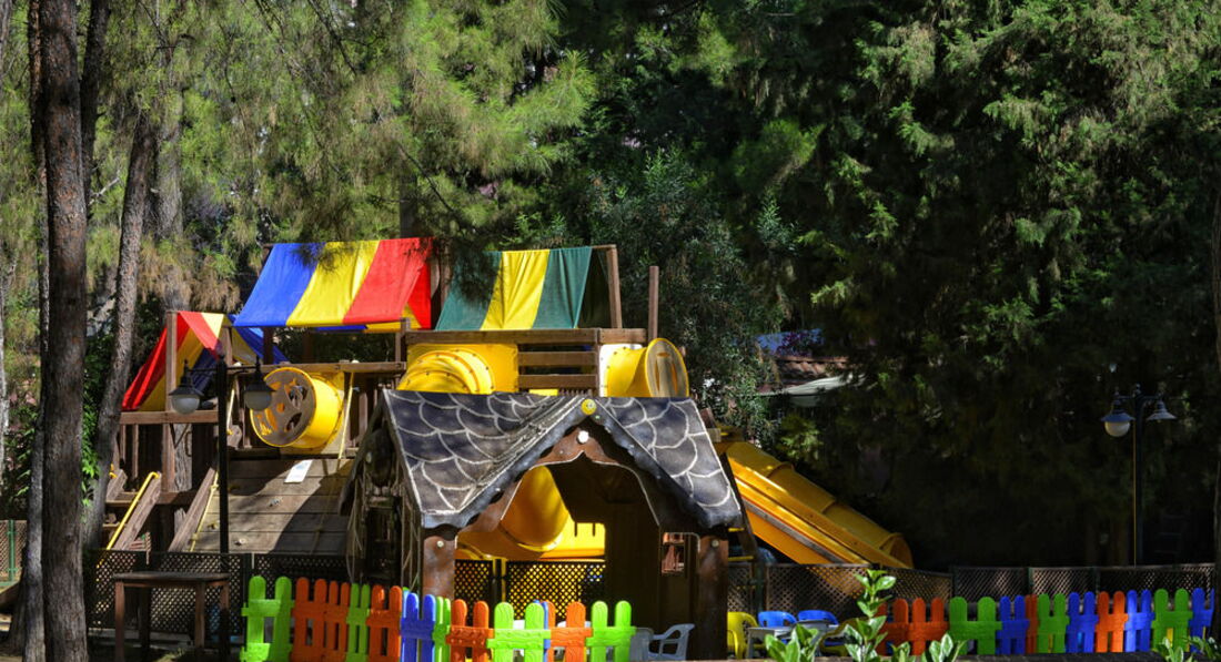 Для детей здесь все удобства: игровой деревянный комплекс, батутный комплекс, игровые автоматы в главном корпусе. Детские клубы (три домика) оснащены всеми необходимыми принадлежностями и игрушками. Работают хороший детские русскоязычные аниматоры. Детская дискотека каждый вечер. В течении всего дня детей развлекают очень хорошо!