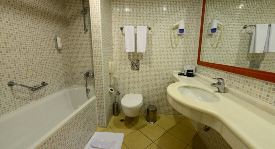 Номер: большой, мебель не очень новая, шкаф разваливался, страшно было открывать. Шторы падали на голову, когда жена попыталась открыть окно, но это всё ничего, дальше хуже. Ванная комната - коврик мы не трогали до отъезда, так как он был весь в плесени, так же как и кафель в душе. Окна - грязные, их не вытирают. С первого раза не откроешь, но если открыл, то закрыть нужно постараться. Всё остальное более менее нормально.