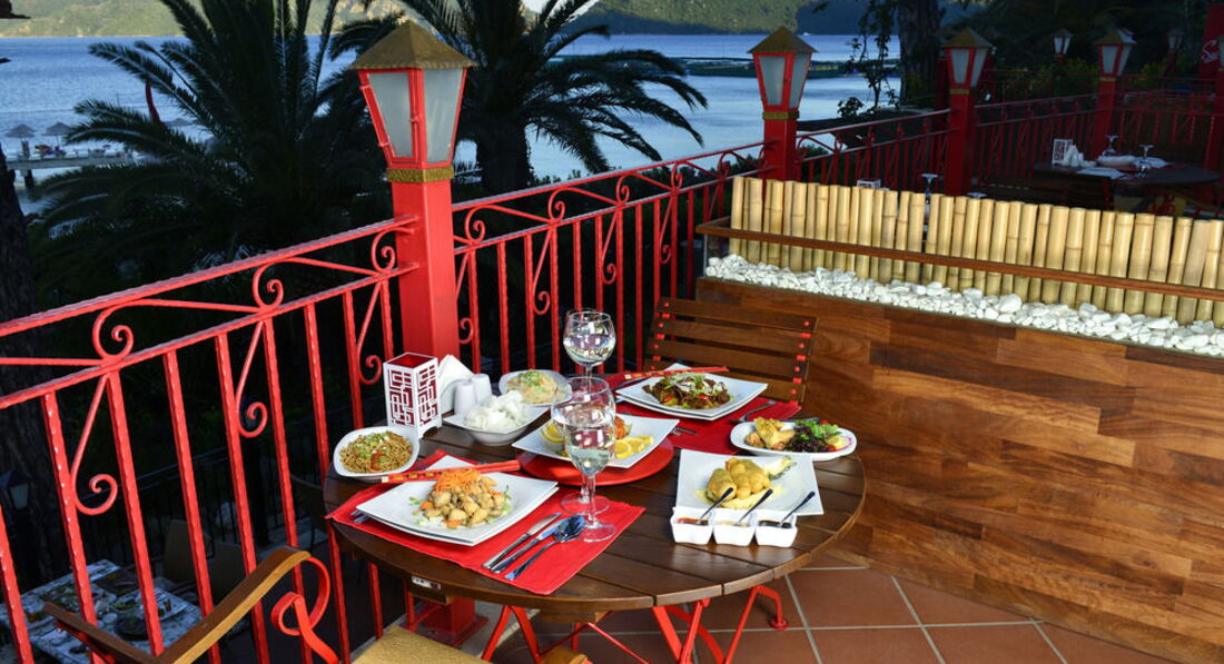 Их тут много (Китайский, Итальянский, Турецкий, Рыбный, Стейк-ресторан), но в основном платные. Нужна предварительная запись на гестрелейшен. Бесплатные Итальянский и Китайский. В платных базовый заказ 40 у.е. на человека.