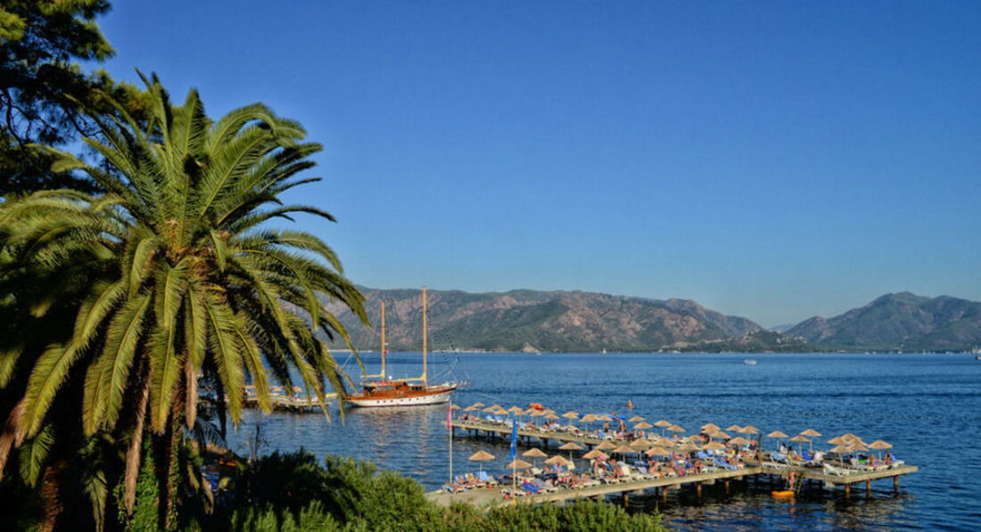 Отдыхали в данном отеле в середине сентября тремя семьями с детьми. Ехали в отель целенаправленно выбирали долго, так как в Турции были не раз (Анатолийское побережье), хотелось сменить регион и впечатления. Что же, мы вполне получили то чего искали, очень довольны прекрасным Марамарисом и окрестностями, климат просто сказка, в сравнении с Кемером например, жара тут не ощущается, из-за низкой влажности. Если белье там абсолютно не сохнет, то тут обдувается ветерком моментально. Любителям 29 градусов в море сразу скажу, Вам не на побережье Эгейского моря, тут вода приятно прохладнее, но ровно на столько чтобы купание было комфортным 24-26 гр.. и вода заметно чище... но это относится больше конечно, не к городскому пляжу, а к району ближе к Ичмелеру где расположен наш отель.