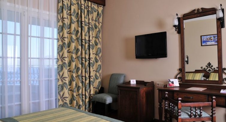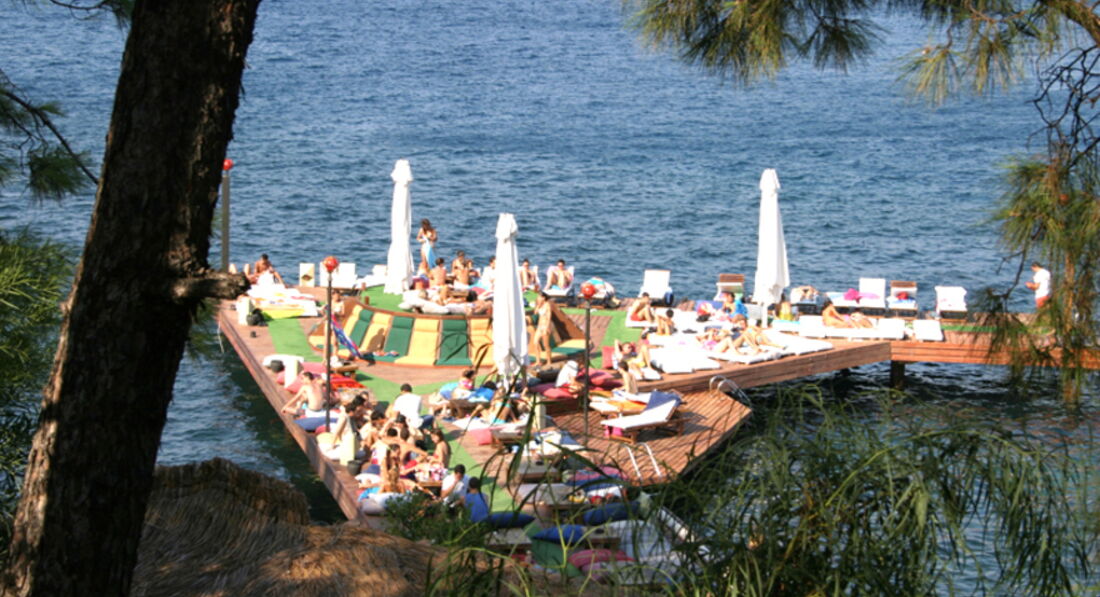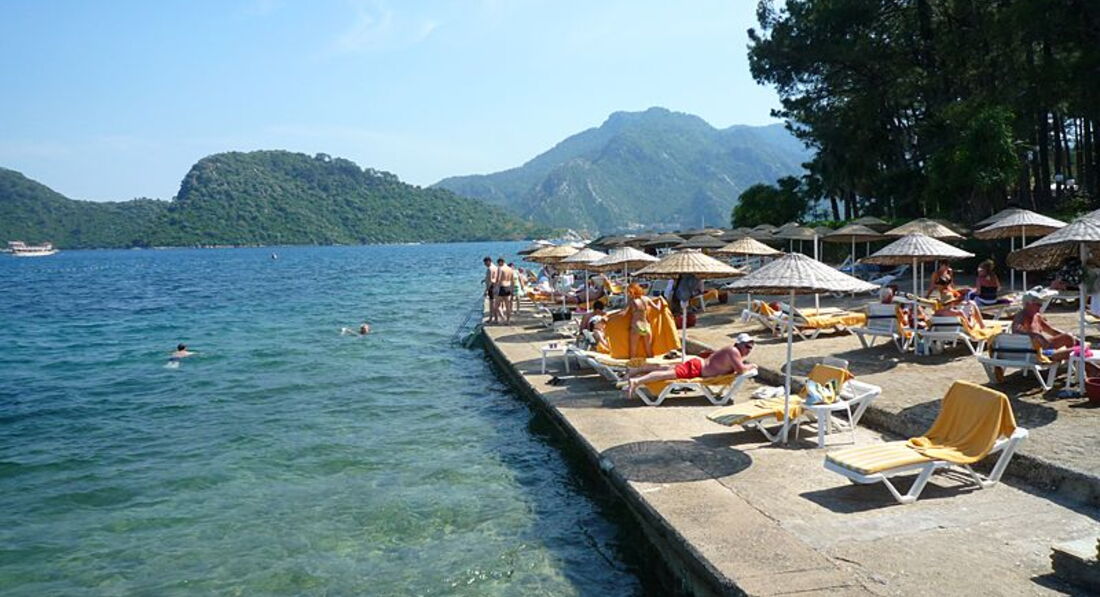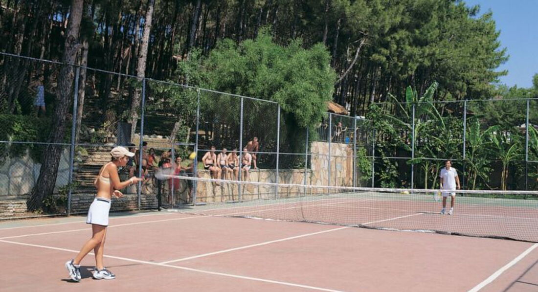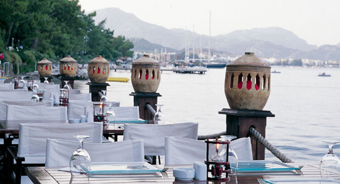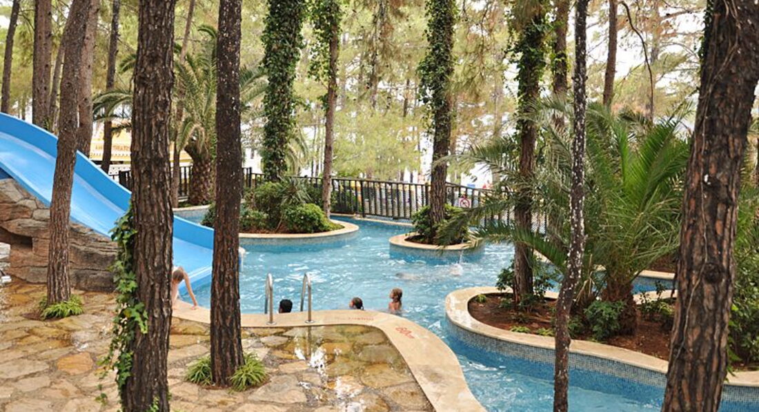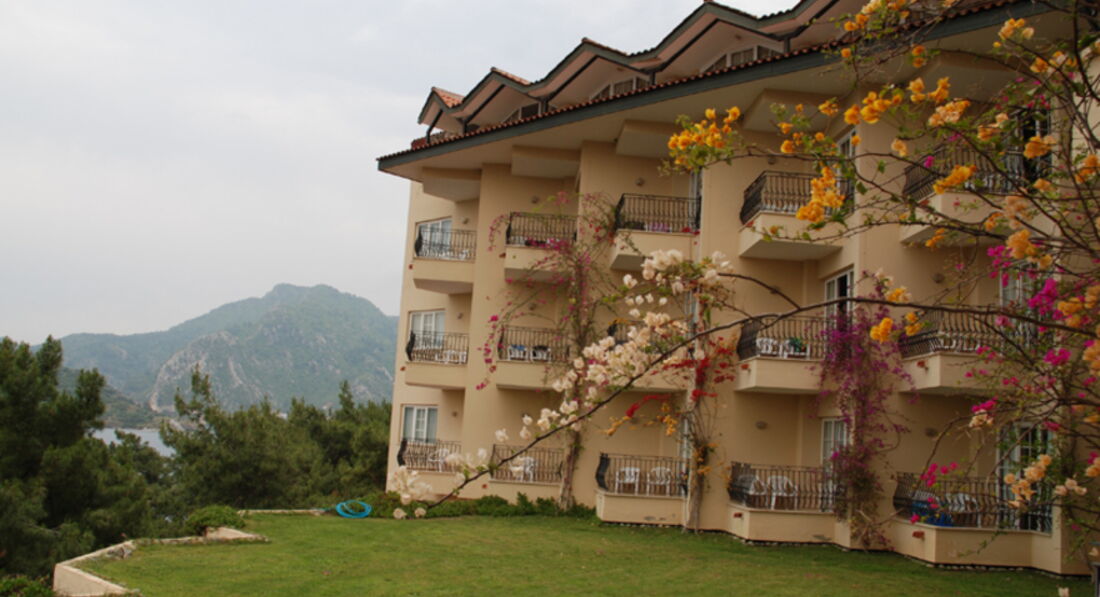Долго выбирали отель на Мармарисе. Попали на самый разгар бархатного сезона. Этот отель был самый лучший - с большой территорией. Вход в море с платформы - по колено и с пирса - сразу глубоко. Очень красивые виды на живописные холмы. Ресторан крытый и терраса среди сосен...вид на бассейн в вечернее время очень радует глаз. Номера средней площади, ремонт старый. В бунгало окна деревянные, возле балкона растут оливковые деревья. Сервис хороший, персонал внимательный. Еще вернемся! =)