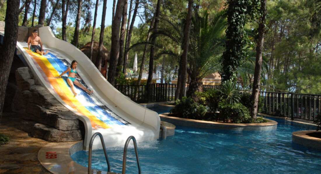 Сам отель построен между Мармарисом и Ичмелером. Что является большим его преиуществом. Так как отели в самих городах не такие комфортные и чаще всего не имеют своего пляжа. Отель расположен среди хвойных деревьев. Чистый воздух. Вид с номера был великолепным. Отдыхали семьей: двое взрослых и трое детей. Дочке 8 лет и для нее анимация, представленная в отеле, была уже не интересной. Наверно она рассчитана для детей более младшего возраста. Изо дня в день питание было не очень разнообразное за все время пребывания, но вцелом ассортимент блюд большой и всегда можно найти что-то по своему вкусу. Море очень чистое даже по-сравнению с морем в соседнем отеле этой же сети, потому что пляж сделан в виде огражденной зоны и песок не попадает в воду. Вода достаточно теплая, но прохладней чем на средиземноморском побережье. Но в этом свои плюсы (вода чище и не бывает разных кишечных инфекций). Убирают по-разному, но если не придираться, то все хорошо и все вопросы можно решить.