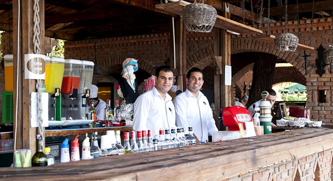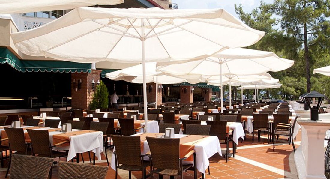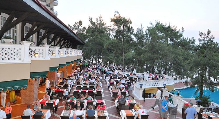 Бари та ресторани: головний ресторан розрахований на 800 осіб (критий, з кондиціонером, літня тераса, дієтичне, дитяче меню, дитячі стільці), лобі-бар (24 години), бар біля басейну (10:00-23:00), бар на пляжі (10:00-24:00), диско-бар (23:00-01:00) та ін. 3 ресторани A la carte: італійська, турецька, рибна - платно, за попередньою резервацією.