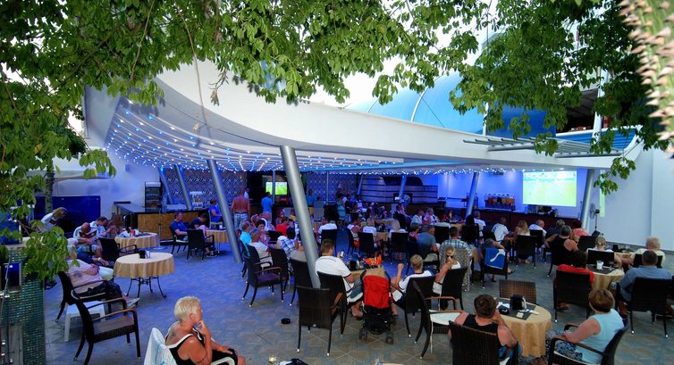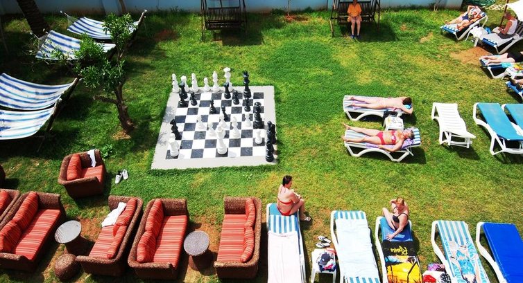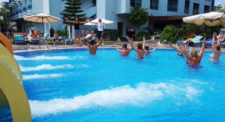 Территория не особо большая, но есть два бассейна. На одном все спокойно, никто не шумел, а во втором горки, напитки, детям мороженное, дартс, бильярд, пинпонг и естественно у обоих бассейнов много лежаков. Во вечерам анимация устраивала шоу, а так они у бассейна с горками целый день скакали. В отеле на каждом этаже журналы, даже на русском есть. Есть компьютер и бесплатный wifi на первом этаже, а так же удобные лонжии с телевизорами.