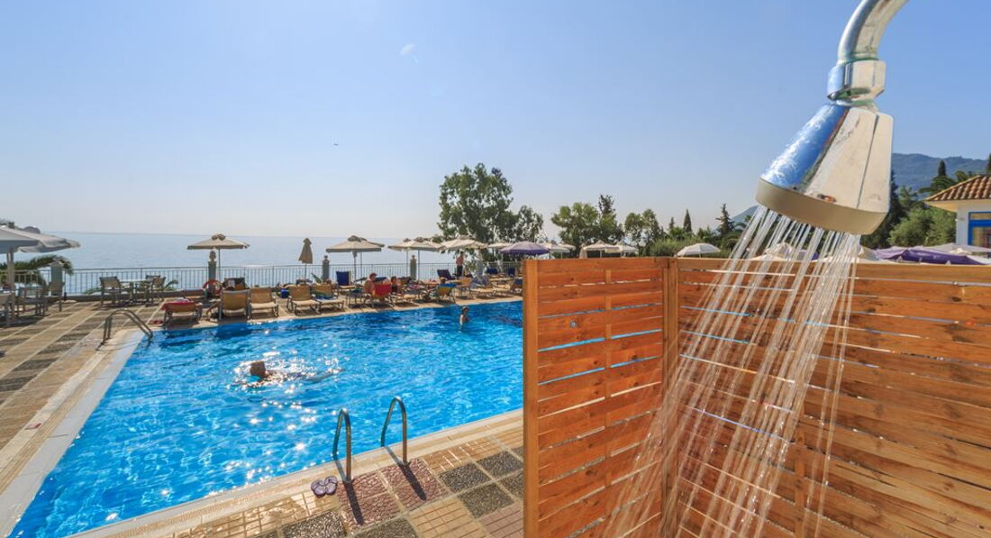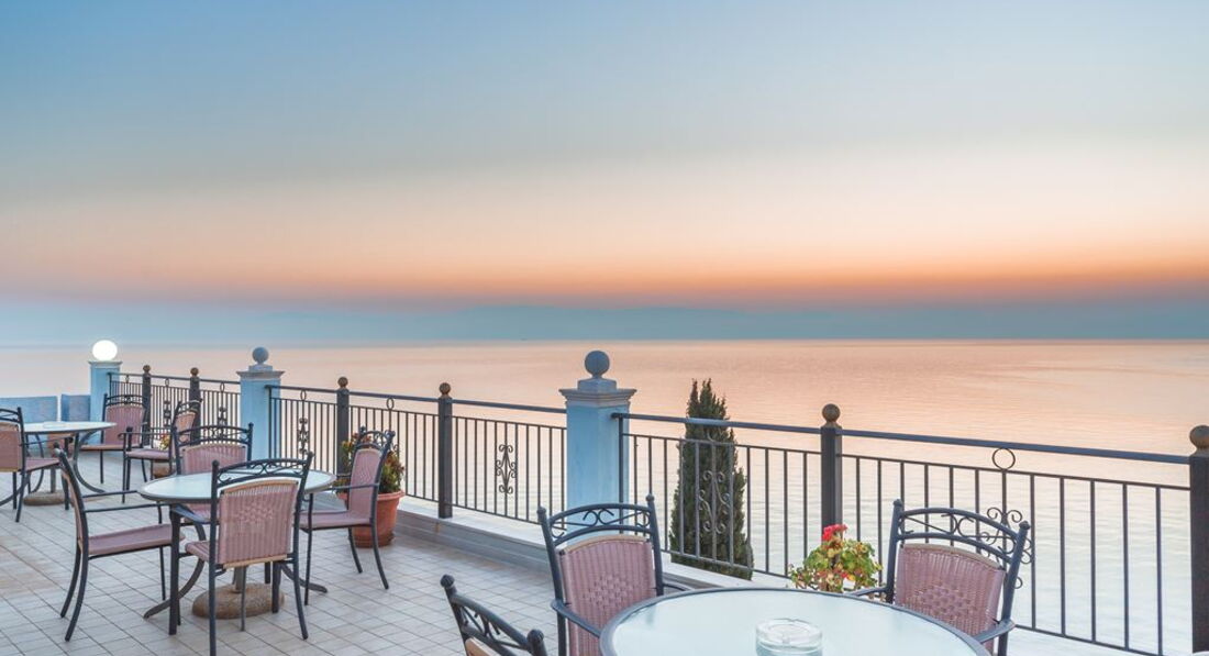 Зручна зелена територія з видом на море, комфортабельні номери, басейн, ресторан, бари, спа-центр, конференц-послуги, інтернет, якісне обслуговування.