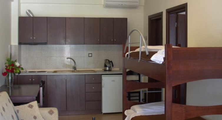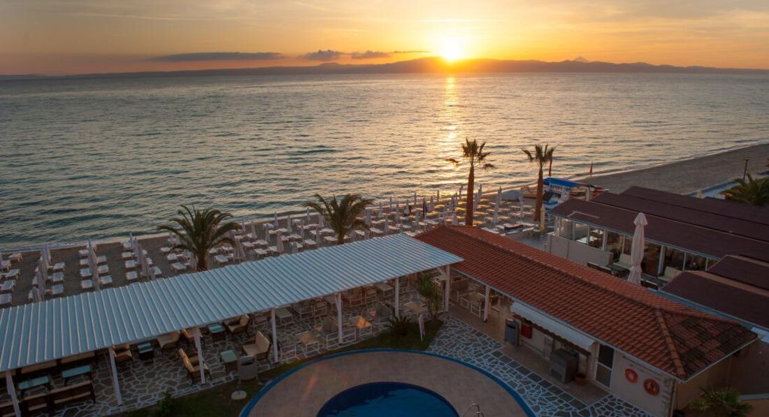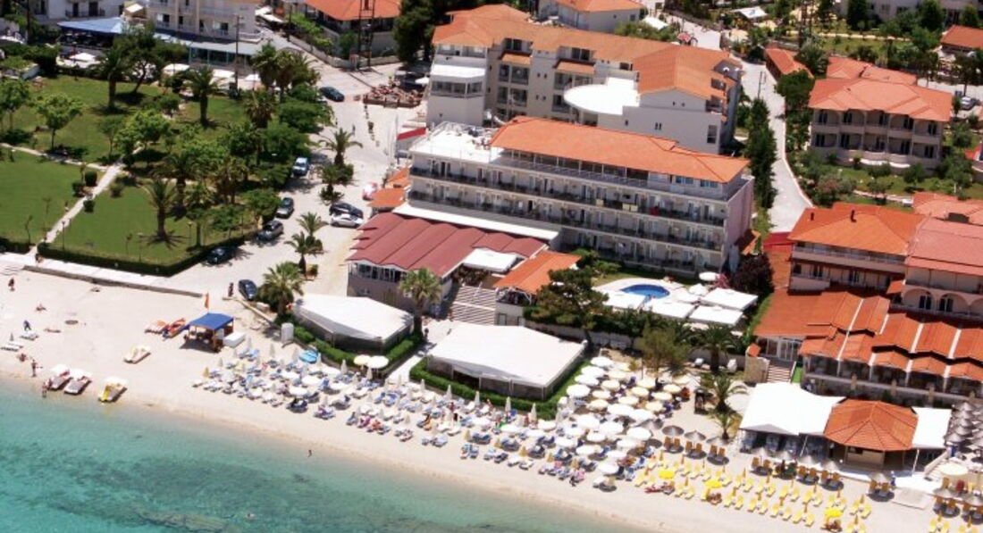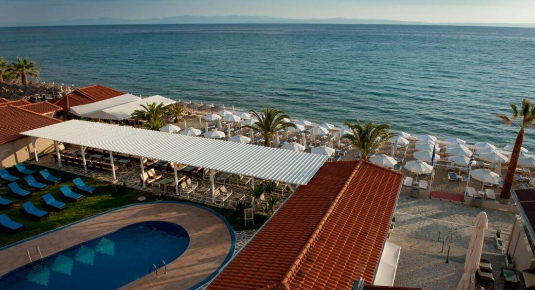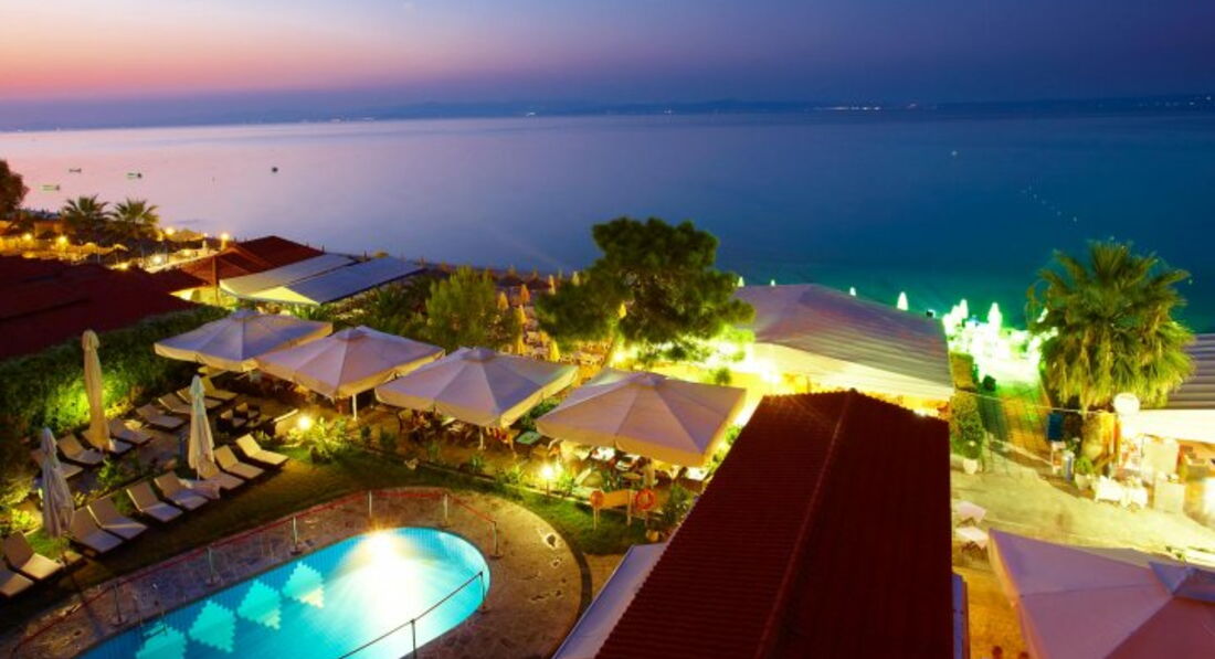 Розташування: за 100 км від аеропорту Македонії на пляжі в туристичному селищі Ханіоті.