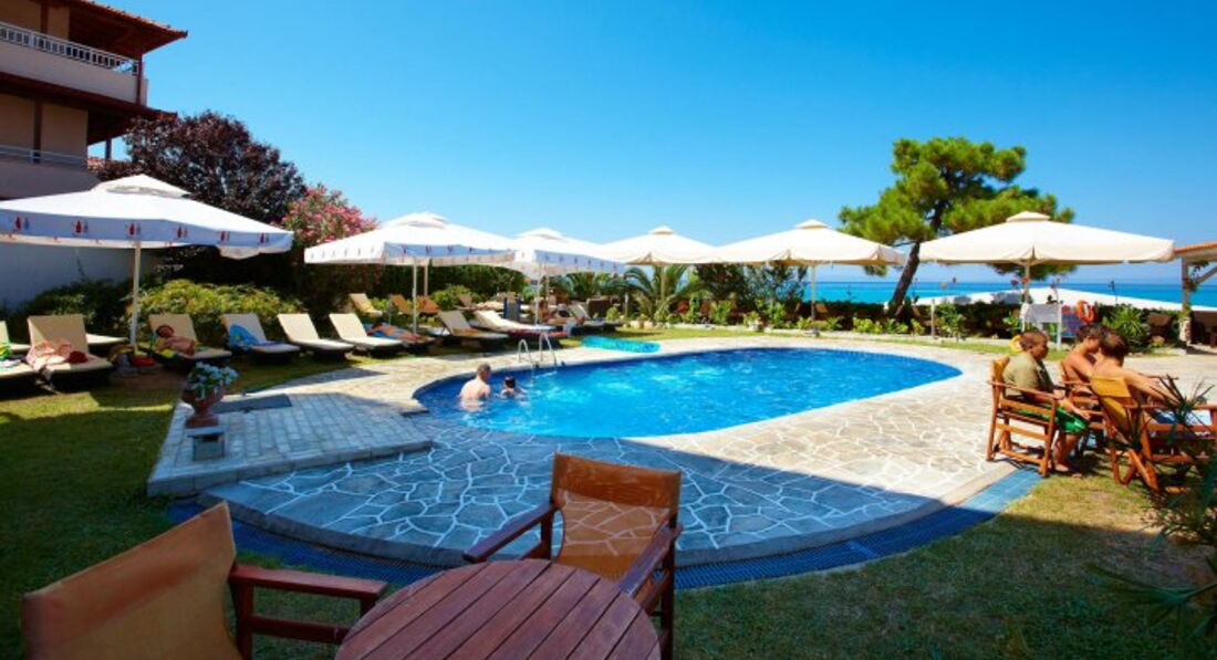 Готель із доглянутою територією та затишними номерами з усім необхідним обладнанням. Вдало розташований на березі моря та поблизу курортного селища Ханіоті. Анімації нема. Рекомендуємо для сімейного відпочинку.