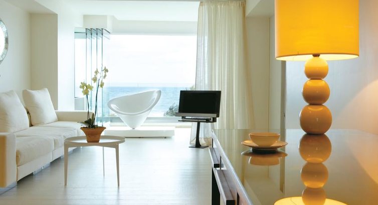 luxuryroom SV/SSV or lagoon view (вид на море, вид на море або лагуну, розташовані в крилі Candia і Lagoon, спальня з вітальнею, основне ліжко – двоспальне, доп. – кушетка, макс. 2+1 чол., 35 м2),