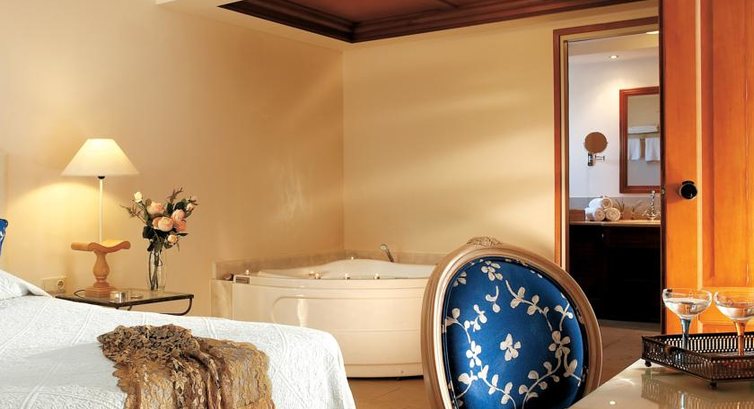 deluxe bungalow suite SSV with jacuzzi (комплекс бунгало через дорогу від головної будівлі, з видом на море, на сад або басейн, вітальня зі їдальнею та повністю обладнаною кухонною зоною, окремо спальня з джакузі та ванною кімнатою, основне ліжко – двоспальне, дод. - Розкладний диван для дітей, окремий туалет, 2 балкони, макс.