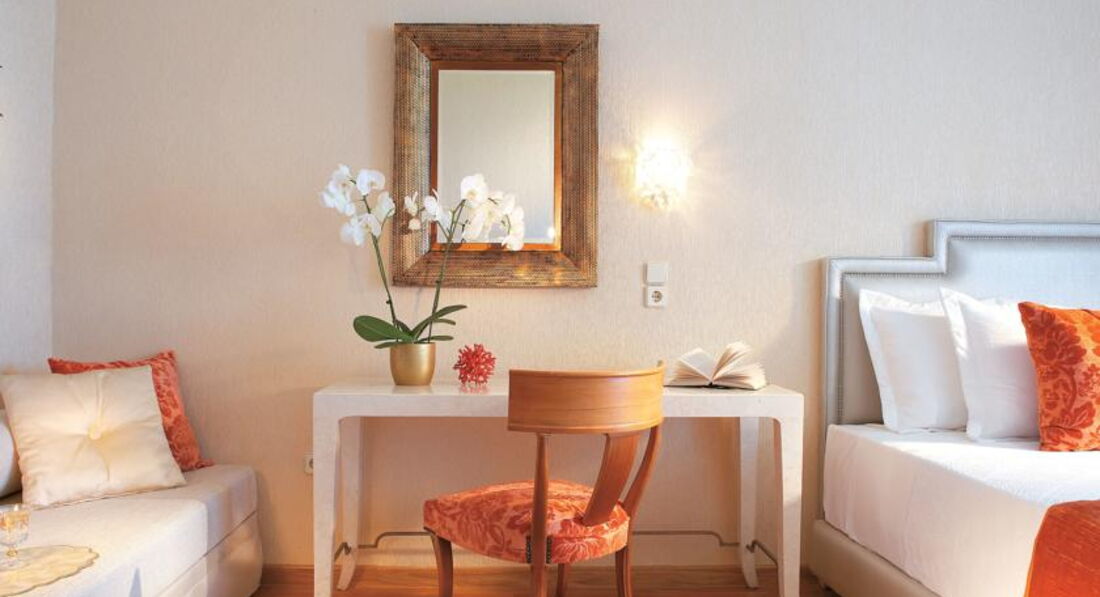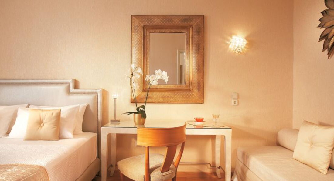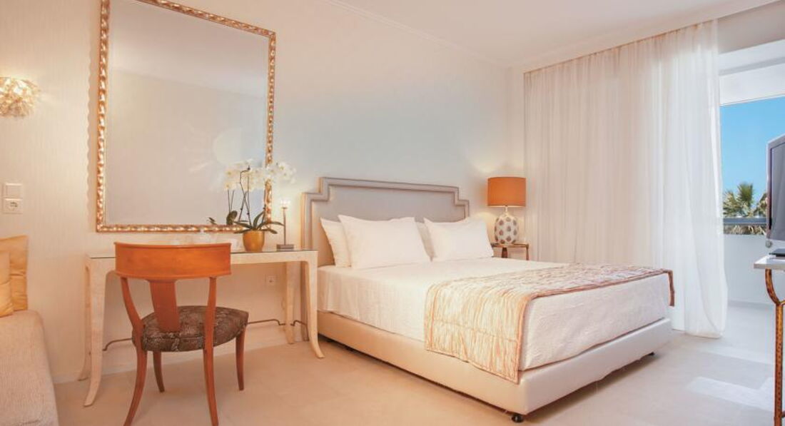 palace guestroom SV (вид на море, розташовані в центральному корпусі, верхній поверх, основне ліжко – двоспальне, дод. – софа, макс. 2+1 чол., 45 м2),