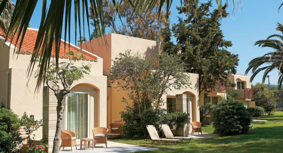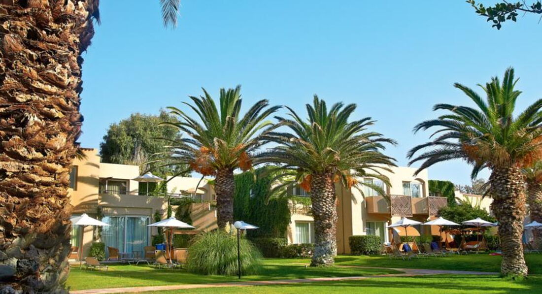 Готель складається з центрального корпусу та комплексу бунгало, побудованих у стилі традиційного критського села.