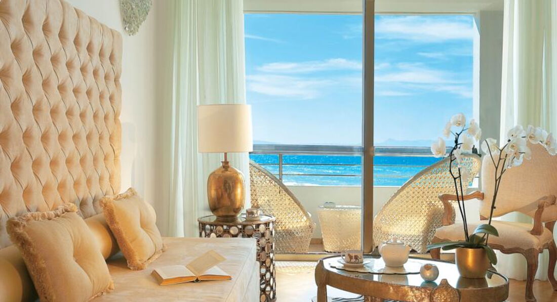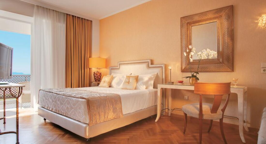 palace luxury suite SV (вид на море, розташовані в центральному корпусі, верхній поверх, спальня, вітальня з розсувними дверима та зоною їдальні, основне ліжко – двоспальне, дод. – софа, макс. 2+2 чол., 86 м2),