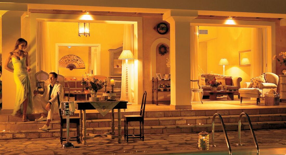 Junior Bungalow Suite, Sea View (вид на море, однокімнатний номер, спальня та вітальня зона, осн. ліжко – двоспальне, дод. – софа, макс. 3 чол., 38 м2); Junior Suite, Frontal Sea View (фронтальний вид на море, розташовані на верхніх поверхах у головній будівлі, спальня з вітальнею та ванною кімнатою відкритого плану, осн. ліжко – двоспальне (оформлене в романтичному стилі), макс. 2 чол., 33 м2 ); Deluxe Suite, Frontal Sea View (фронтальний вид на море, розташований в головній будівлі, двокімнатний номер, спальня та вітальня з розсувними дверима, вбиральня, осн. ліжко – двоспальне, додатковий – диван-ліжко, макс. 3 чол., 41 м2 ); Deluxe Bungalow Suite, Side Sea View (боковий вид на море, двокімнатний номер, спальня та вітальня з розсувними дверима, вбиральня, осн. ліжко – двоспальне, дод. – розкладний диван, макс. 4 чол., 45 м2); Palace Suite, Frontal Sea View (фронтальний вид на море, розташовані на верхніх поверхах головної будівлі, спальня та вітальня з розсувними дверима, ванна кімната та друга спальня з вітальнею та ванною кімнатою відкритого плану, вбиральня, осн. ліжко – двоспальне, дод. – двоспальне та диван-ліжко, макс.5 чол., 74 м2); Romantic Villa, Private Pool & Garden, 1st Row (розташована на лінії пляжу, спальня з вітальнею, гардеробна, окрема душова зі скла та каменю, осн. ліжко – двоспальне, додатковий – диван-ліжко, сад 270–290 м2, індивідуальний басейн 40 м2, макс.2+1 чол., 70 м2); One-Bedroom Dream Villa, Private Pool, 1st Row (розташована на лінії пляжу, спальня та вітальня з обідньою зоною, вбиральня, ванна кімната, осн. ліжко – двоспальне, додатковий – диван-ліжко, сад 180–220 м2, індивідуальний басейн 32 м2, макс.2+2 чол., 70 м2); Palazzina, 2 Private Pools (розташована на лінії пляжу, вітальня/їдальня, спальня з гардеробною та ванною кімнатою. Сумежні двері ведуть у другу спальню з вітальнею, ванною кімнатою та гардеробною, осн. ліжко – двоспальне, дод. – двоспальне ліжко , сад 420-450 м2, 2 індивідуальні басейни 32 і 40 м2, макс.6 чол., 140 м2).У номері: сейф: у номері, безкоштовно (електронний) набір для приготування чаю/кави зміна білизни: через день (Famous Class – щодня) room service: платно (07:00–01:00) банні приналежності кондиціонер: індивідуальний зміна рушників: екосистема ванна прибирання номера: щоденно телефон підлога: керамічна плитка капці балкон або тераса фен: є ТБ: супутникове міні-бар платно (за запитом) опалення халат стереосистема Hi-Fi (міні) пляжні рушники