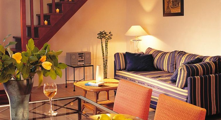 1-bedroom maisonette (вид на сад або басейн, 1 поверх: вітальня оснащена кухонним куточком, диван або два окремі ліжка (може бути використана як додаткова спальня). У деяких номерах додатково - ванна кімната з душовою та WC. 2 поверх: основна спальня , двоспальне ліжко, м'який куточок, ванна кімната (деякі номери оснащені джакузі), макс. 4 чол., 41-63 м2),