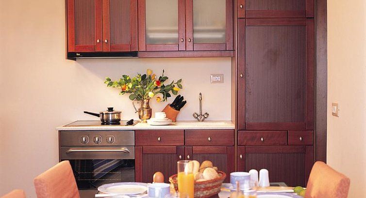 •обладнана кухня (посуд, кухонне приладдя, електричний чайник, кавоварка, посудомийна машина, холодильник з морозильною камерою, мікрохвильова піч, духовка, міксер, тостер)