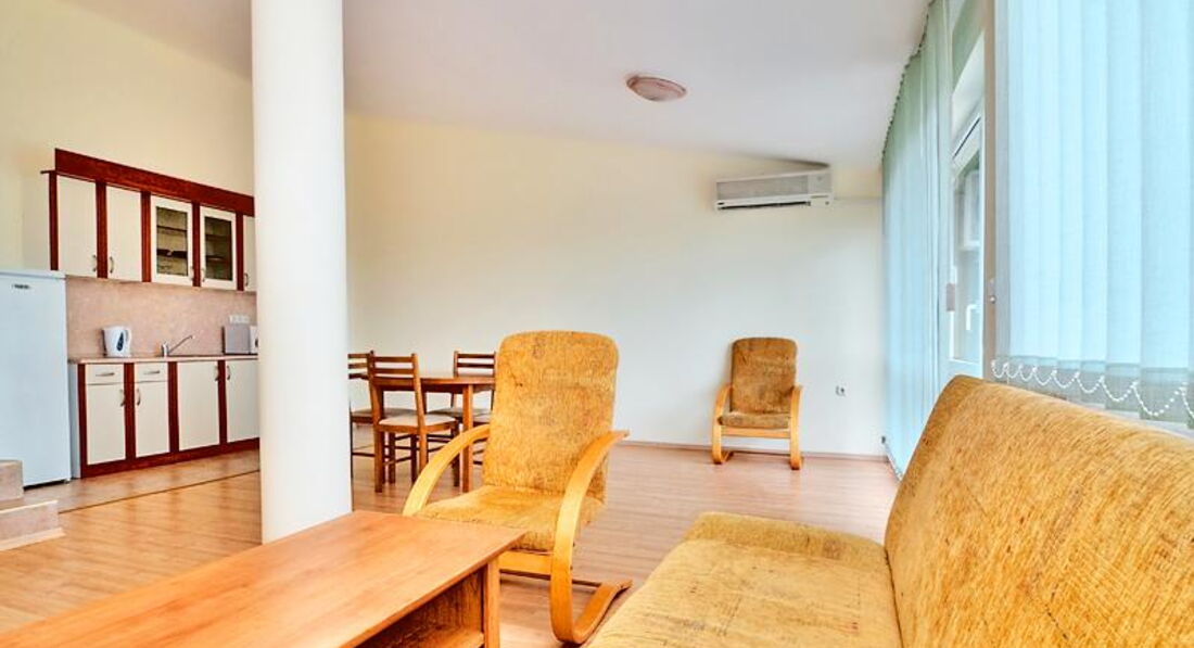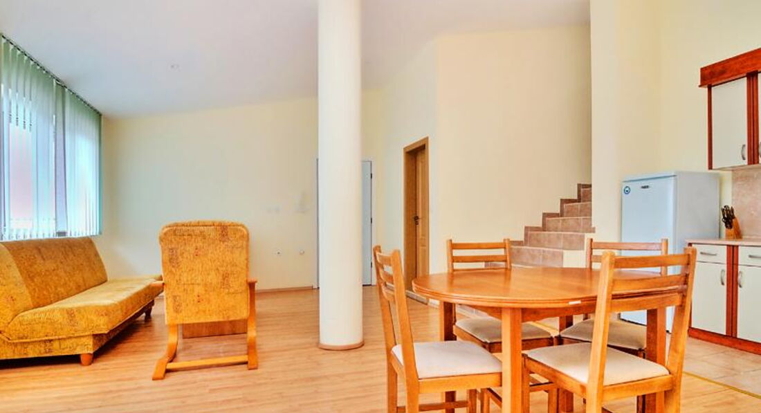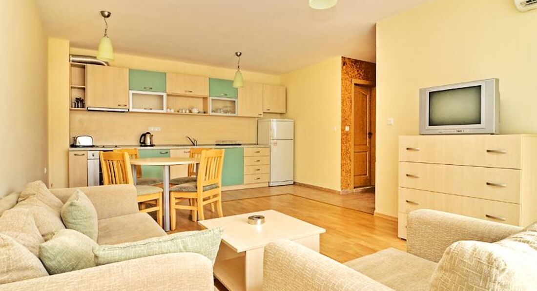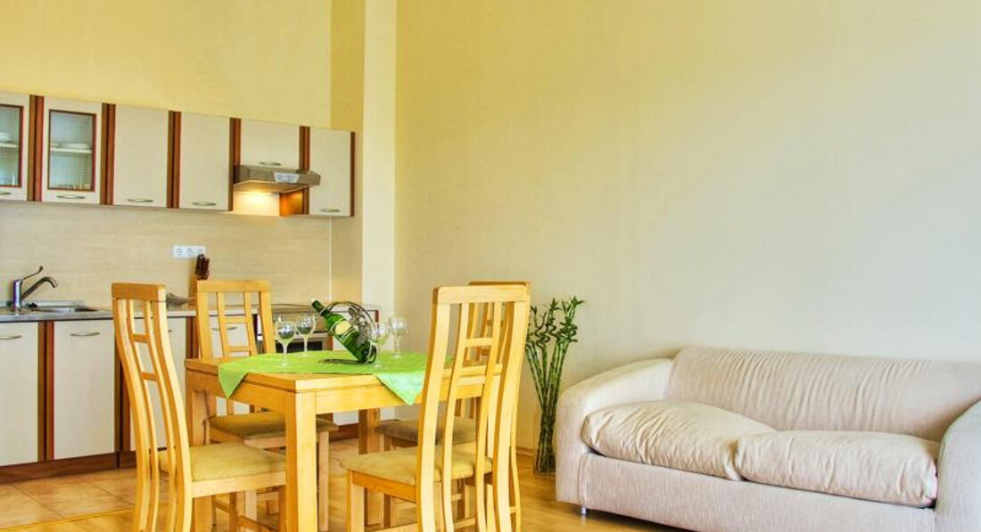 В Болгарии были первый раз . До этого были в Испании , Греции , Турции , Египте , Финляндии и т.д Отдыхали в этих апартаментах 12 дней . Болгария понравилась и отель тоже. В отличие от многих отелей, расположенных на Солнечном берегу, у этого отеля красивая , хоть и небольшая, очень зелёная территория. Везде растут хвойники, розы. Все чисто и уютно . Языкового барьера нет. Болгары очень приветливые люди. Администратор Майя-отзывчива ко всем просьбам туристов, всегда готова помочь, подсказать . Апартаменты хорошие, есть все необходимое, все работает . Единственный минус - это плохая сковородка , невозможно на ней пожарить даже яичницу . Привозите с собой или купите в супермаркете . Расположение очень удачное: недалёко от моря , и в тоже время не слышно вечерней тусовки на Набережной.