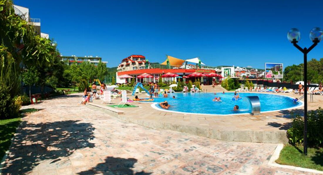 Ездили с семьей, я, муж и ребенок 6 лет. Заселили нас быстро, номер был очень хороший, все было чисто. В номере было все что нужно, посуда, холодильник, микроволновая печь, вообщем все!!! Убирались каждые два дня, меняли постельное, полотенца. Очень нам понравилась при отельная зона, детская площадка, там она не одна. У нас ребенок был очень доволен. Бассейн не очень большой, но всем места в нем хватало, мы в нем купались после прихода с моря. Лежаков всем хватало. Персонал был очень вежлив, всегда улыбчив. Еда очень вкусная была, особенно пицца, там она божественна!! Вообщем всем рекомендую, обязательно приедем отдыхать в Болгарию, и выберем именно этот отель!!!!