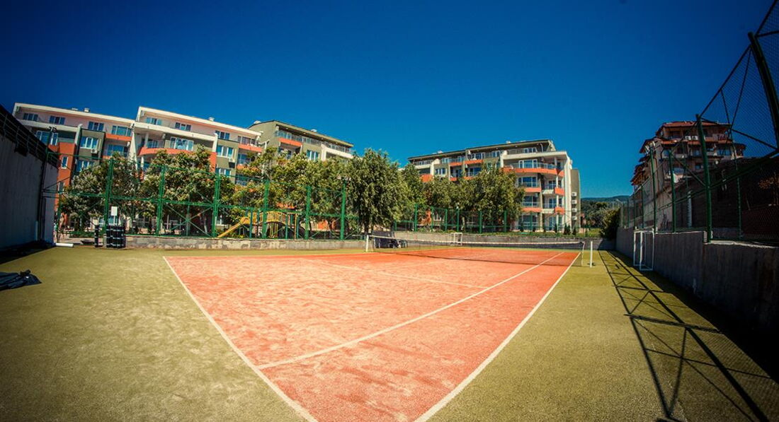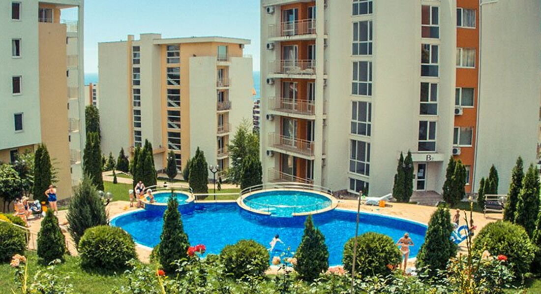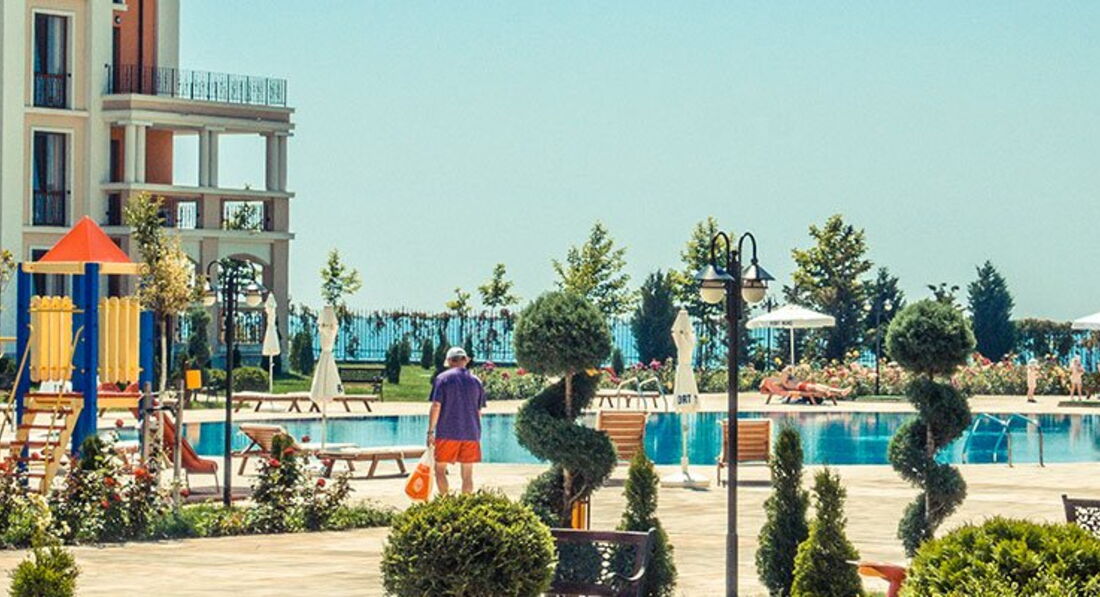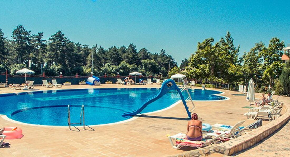 Розташований на межі курортів Сонячний Берег і Св. Влас, в оточенні парку, цей апартотель подарує Вам безтурботний відпочинок в безпосередній близькості до моря. До послуг гостей: комфортабельні апартаменти з кухнею, відкритий басейн, дитячий майданчик і тенісний корт. апартотель розташований на межі курортів Сонячний Берег та Св. Влас, за 5 хвилин ходьби від пляжу. При заїзді клієнти зобов'язані внести депозит за номер 50 євро.