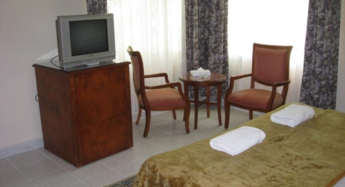 Во вторых: почему- то отель заявлен на сайтах как 3-х звездочный? В ваучере у меня четко была прописана 2-х звездочная категория- и это больше соответствует действительности. Старый обшарпанный номерной фонд, стойкий запах сырости, ветхости... Полное ощущение, что на машине времени попал в 70-е годы где нибудь в российской провинции. Номер убирают тяп-ляп. Сын на третий день пролил сок на тумбочке- не стала промокать из интереса, так за неделю это пятно никто и не заметил.