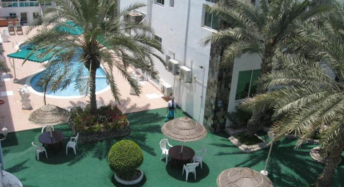 Соглашусь со всеми негативными отзывами про этот отель. Из отеля можно сделать приют для бездомных, но ни как не продавать его как трехзвездочный. Ни о каких звездах там и речи быть не может. Отдыхали в декабре 2013 в данном отеле с мужем и ребенком. Отель- ночлежка для неприхотливых туристов. Номер был с видом на море и дорогу, очень шумно. Номер дали огромный с двумя туалетами и кухней и! 1 кроватью:))) В кондиционере завелись птицы:) кондер над кроватью, несколько дней спать было вообще не возможно))) пока наконец то на наши жалобы не отреагировали и не устранили проблему, но к концу нашего отдыха птички вернулись)) Все что пишут про убогость, старость, живность - все правда. Уборки нормальной нет. Я сама мыла шкаф чтобы положить в него вещи, шторы стояли колом от грязи, так называемая кухня я вообще не знаю для чего она там, убогий кухонный шкаф, плиты не было, раковина не работала, посуды не было, туалеты с ванной это вообще что то. Завтраки и ужины были включены в наш тур, еда так себе. Сервис ни какой. Но отдохнули мы очень хорошо. На 10 дней взяли машину в прокат, и все эмираты сами объездили, ездили сами в Абу Даби, посетили мечеть Зайда и аквапарк и феррари парк, и на Индийский океан сами, и в Дубайскую Венецию сами. Из экскурсий брали только сафари в пустыне -понравилось. Остальные экскурсии организовали себе сами. Пару дней ходили на бесплатный пляж от отеля в Аджмане, потом съездили в Аль-Мамзар парк и больше уже на наш пляж не ходили, ездили каждый день в Аль-Мамзар, там просто супер! пляжи супер! сам парк очень красивый, качельки, карусельки. Вход - 5 дирхам. На счет аренды авто можно договориться на ресепшене, рекомендую брать авто с навигатором, очень легко заблудиться, и запутаться в их развязках на дорогах. Ездить не страшно, водители на дорогах вежливые, аварии случаются крайне редко, за 2 недели увидели только 2. Нашли магазин где продают алкоголь, в Аджмане))) В общем если вы планируете бюджетный отдых в ОАЭ рассмотрите другие варианты, рядом есть отель верона резорт 2* - очень не плохой, есть еще много вариантов не дорогих, ну а если все же попали в этот отель, не расстраивайтесь, получайте максимум от отдыха вне отеля!