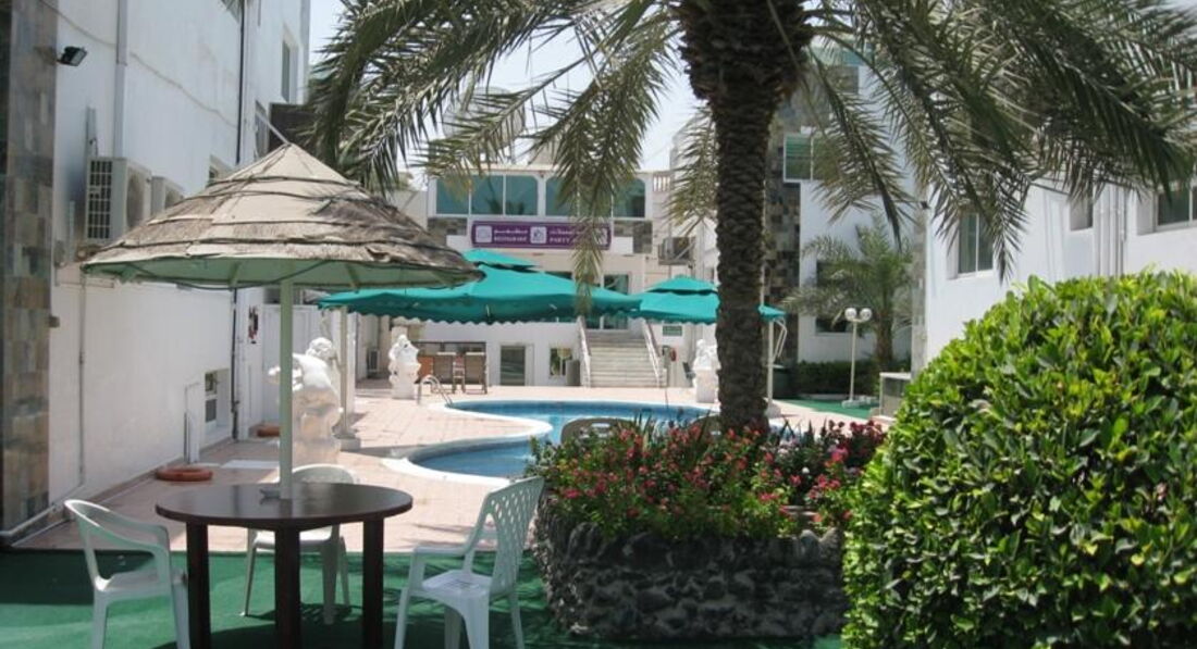 Прилетели в отель все русские, которые пострадали от перебронированных туров в египет и турцию. Скажу прямо не ведитесь у туроператоров, лучше переплатить и лететь в нормальный отель. При заезде меняли 2 номера, то что предлагали это просто ужас, грязные номера в которых ванна с туалетом выглядит как в комуналке, не было даже простыней, убираются в номерах ужасно, отель не просто старый, его пора снести, находится на берегу, канализацию из всех близлежайших отелей сливают прямо в залив, купаться невозможно и запрещено, возят на пляж для "русских", на пляже не убираются совсем, бычки, пакеты, мусор, все это вы увидите на пляже, не пожалейте денег на такси и езжайте на другой пляж, впечатления будут совсем другие. Питание как в советской столовой, юпи вместо сока, на завтрак тухлые вареные яйца, на обед баланда в виде "борща", на ужин мясо похожее на кролика или белку, но точно не говядина, один раз за неделю давали какую то непонятную рыбу, запах в этой столовой ужас, аппетит пропадает сразу, ездили в магазин за креветками и варили сами, хоть кастрюлю то дали, можно вкусно поесть в соседних отелях или в ресторанах, по деньгам как в россии обед примерно в 1500 рублей, вина в шардже просто нет, район шарджа самый строгий эмират, чтобы купить что то из спиртного нужно ехать в аджаман или в дубай, рядом с отелем магазинов просто нет. Как будто русских вывезли на необитаемый остров, и мы не достойны хорошего отдыха. Рядом есть заправка на которой можно хоть гамбургер купить. Отель не спокойный и не тихий, потому что дорога рядом. бассейны грязные что ноги страшно помочить в них. подогрев одного бассейна( сливается в бассейн горячая вода через трубу по улице, зрелище смешное). На ресепшене предлагают экскурсии это вообще финиш ( ладно дорого так еще они обьединяются с туроператорами, привозят людей до места а там сами по себе, один мужчина потерялся с отеля в дубай молл, мы его направили, вообщем если хотите экстримальный отдых вам туда, но лучше не рискуйте.