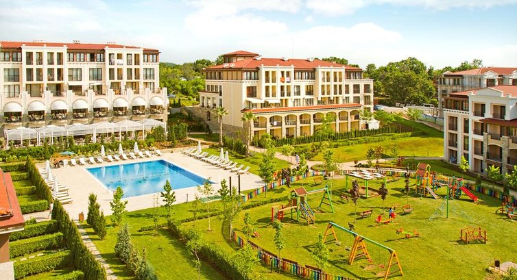 Добрый день!решила написать отзыв об этом отеле,отдыхали в котором мы с 22 июня по 6 июля 2015 года!В целом отель очень понравился,он отлично подойдет для семейного отдыха!парам еще без детей наверное будет скучновато,но это мое мнение)Если хочется тишины спокойствия и моря то надо ехать именно туда!Номер у нас был студия,в ней есть все,начиная столовыми приборами и заканчивая кофеваркой ,тостером и прочими кухонными принадлежностями!С Детьми это очень удобно!)Номер убирали прямо скажу не очень хорошо,хотя мы оставляли чаевые,но лучше убираться все равно не стали)Правда полотенца и постельное меняли без проблем,это плюс)У нас был завтрак ужин,завтраки однообразные,вообщем то как везде -каши,хлеб,нарезка,овощи фрукты хлопья яйца омлет)Ужины более разнообразны,всегда было можно найти что покушать)На территории есть супермаркет,там есть все необходимое из продуктов и бытовых штучек)рядом есть палатки с фруктами,с очень вкусными,с нашими не сравнить)Пляж через дорогу,хороший заход,долго мелко,песочек приятный,поначалу было очень чисто и вода прозрачнейшая,но потом к концу нашего отъезда людей становилось больше и поэтому грязнее,окурки бумажки попадались,это конечно не очень приятно)лежаки зонты платно 16 левов за все весь день)вообще считается что это самый хороший пляж- близлежащий)На территории для детей большая игровая площадка,небольшие аттракционы,бассейны,батут,футбольная площадка)Дети постарше всегда находились на улице,всем есть чем заняться!на всей территории есть вай-фай,не особо быстрый,но все же)Персонал приветливый,все вопросы решают если просишь что-то!А какой там воздух просто обалдеть!вообщем если хочется отдохнуть от суеты и домашних забот семьей этот отель отлично подойдет для отдыха)