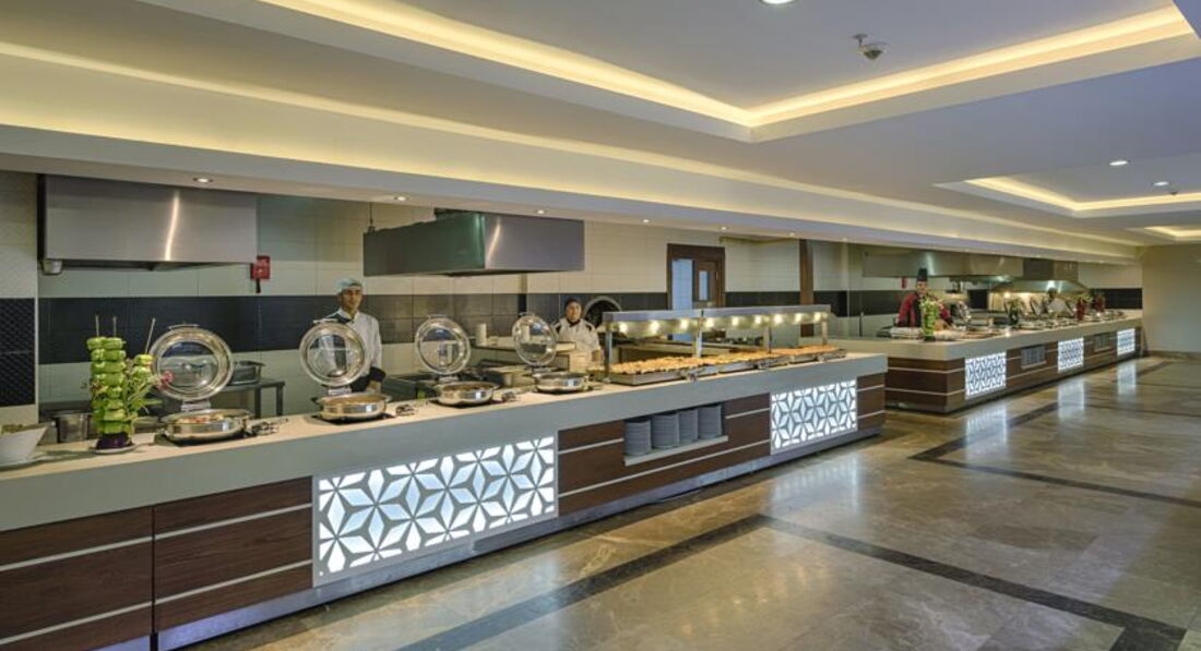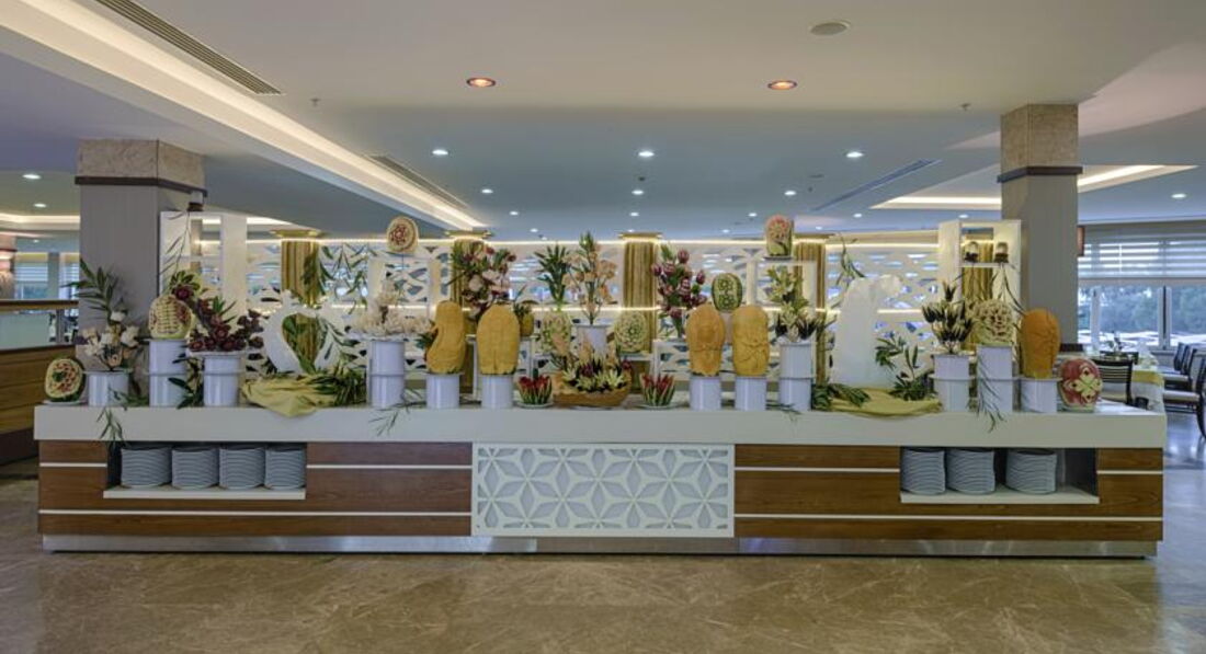Нормальный ресторан. (Турецкая столовая в хорошем понимании) Есть что поесть и детям и взрослым не все перчёное и супер соленое. есть даже диетический стол! Буду краток. Фрукты и Овощи и всё что с ними связано отличное. Рыба - отличная.(разная были даже ролы)) на турецкий манер конечно! Но тем не менее)) Мясо - в основном курица и индейка. Баранины и говядины мало((. Сладости - турецкие вкусные, остальные не знаю принципиально не ем другие в Турции. По мне так манка, она и в Турции манка! Снек ресторан нормальный, но мы там почти не ели (выбор там меньше, но можно в плавках сидеть) Потому что 1. Жарко В обед было за 30 и 2. Мухи и осы (ребенок да и жена от них не в восторге). В снеке брали Гезлеме и мороженку и шли в обычный ресторан на обед!