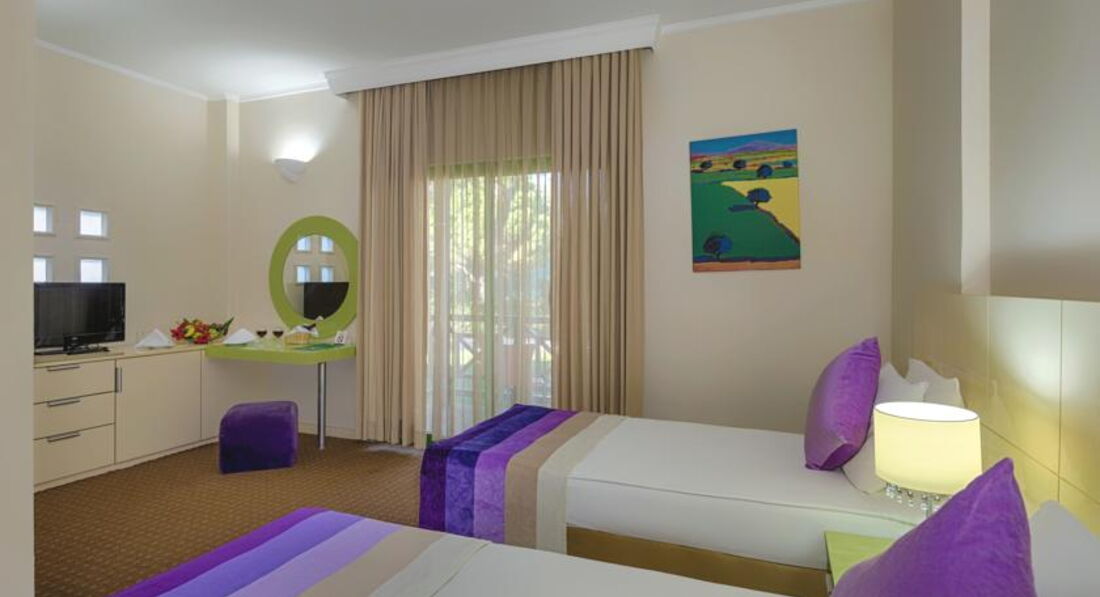 Сначала заселились в бунгало, первое в ряду бунгало. Не понравилось, что ночью слышно все приезжающие и уезжающие с туристами автобусы, попросили заменить бунгало - на следующий день без каких-либо доплат номер был заменен. Корпус Perge - рекомендую, не слышно ни дороги, ни звуков анимации своего и соседнего отелей. Прекрасная работа сотрудников ресепшен - не нужно ходить, просить, умолять, задабривать, с пониманием относятся к любой просьбе, идут навстречу, попросили одеяла - принесли тут же.