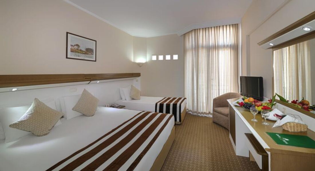 Отдыхали в этом отели в октябре. Погода порадовала, +30,+32 Днём и +26 Вечером. Ну по порядку: В Турции уже седьмой раз, страну эту любим и стараемся хотя бы раз в год её посетить. Летали туроператором Пегас, самолёт чуть задержали и туда и обратно, но 30-40 минут это ерунда.. Прилетели рано, в 6 утра, в 7 утра были уже на месте, отель рядом с аэропортом, ехать 35-40 минут. Сразу пошли пить кофе и завтракать, по предыдущим отзывам поняли, что заселения раньше 14-00 не будет, поэтому заранее подготовили купальные принадлежности и тапочки. В 12-00 наш номер был уже готов и мы заселились. На ресепшене работают любезные, милые девушки, хочу отметить Наталью, привезённый презент из Санкт-Петербурга помог заселиться в корпус Зевс, хотя ранее оплачивали стандарт. номер в главном корпусе. Мы отдыхали с ребёнком, поэтому признательны ей за, выбранный для нас номер. Отель нам понравился, хотя основной контингент русские, но за исключением некоторых представителей, народ воспитанный и приличный. Ну как везде))) Прекрасная анимация! Ребята весёлые и доброжелательные, хотим отметить Артура ("привет саботаж") весёлый, остроумный, артистичный и Юлию, а так же Алёну, Катю и других девочек из Мини-клуба, ребёнок очень к ним привязался, даже расплакался , когда уезжали. В общем команда хорошая и настроение всегда старались поднять. По питанию: прекрасный ресторан с хорошим выбором блюд, хороший выбор рыбы и очень понравилось тушёное мясо, а так же гречневая лапша. Отдельно хотелось бы выделить шеф-повара кондитерского цеха, такого выбора выпечки и тортиков не было не в одном отеле. Очень всё вкусно! Спасибо!