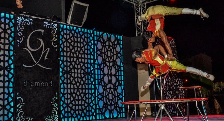 Отель достаточно большой и вместительный (около 550 номеров). В сезон конечно на пляже, возле бассейна и ресторане может быть тесновато. Каждый вечер на сцене летней террасы выступают акробаты, танцоры и певцы.