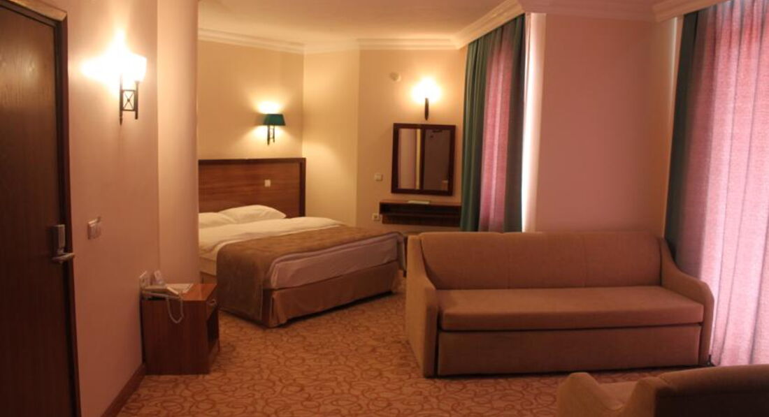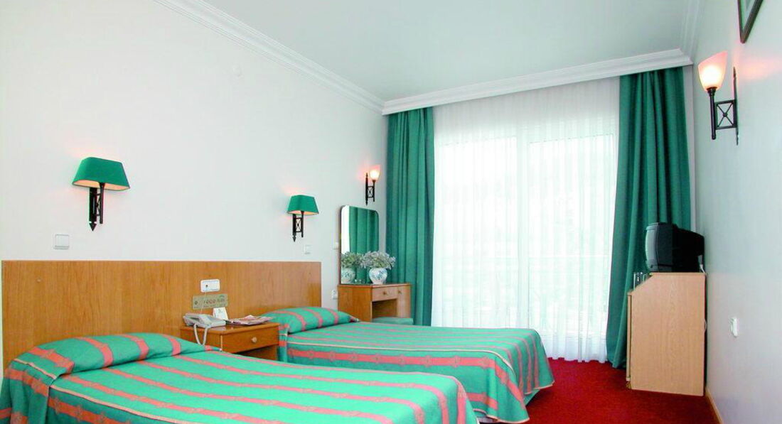 При покупке выбрала номер в главном корпусе. Заселили сразу (раньше 14:00), но на -1 этаж с видом на баки и стену. Номер маленький и темный. Пошла на ресепшен с просьбой о переселении - сотрудник сказал нет номеров, "но если вы можете мне что-нибудь дать, то я постараюсь разобраться". В итоге 30$ и у меня одной номер на троих человек с прекрасным видом на бассейн и горы. Неприятный момент, учитывая, что зачастую переселяют бесплатно, но я не жалею. За чистоту 5-, уборка мне каждый день не нужна, застелить кровать и сама могу. Питание отличное, но много фритюра - я не фанат. Вежливый персонал. Вай фай только лобби и бассейн (у меня ловил с балкона еще), но вариант купить местную симку Турцелл около 80 лир 6 гб интернета. Пляж далековато, но вполне терпимо, правда на пляже отеля я так и не была. Советую пляжи в Ичмелере. До остановки автобуса минут 10, (стоит 3 лиры, до центра 15 мин). Каждый день раза по 2-3 ходила. Днем в +39 тяжеловато. В общем, это вполне хороший отель, со своими минусами и плюсами. Если тур недорогой - советую однозначно. Рядом сосновый лес - запахи супер. Еще очень советую экскурсии от Валентины (недалеко от отеля).