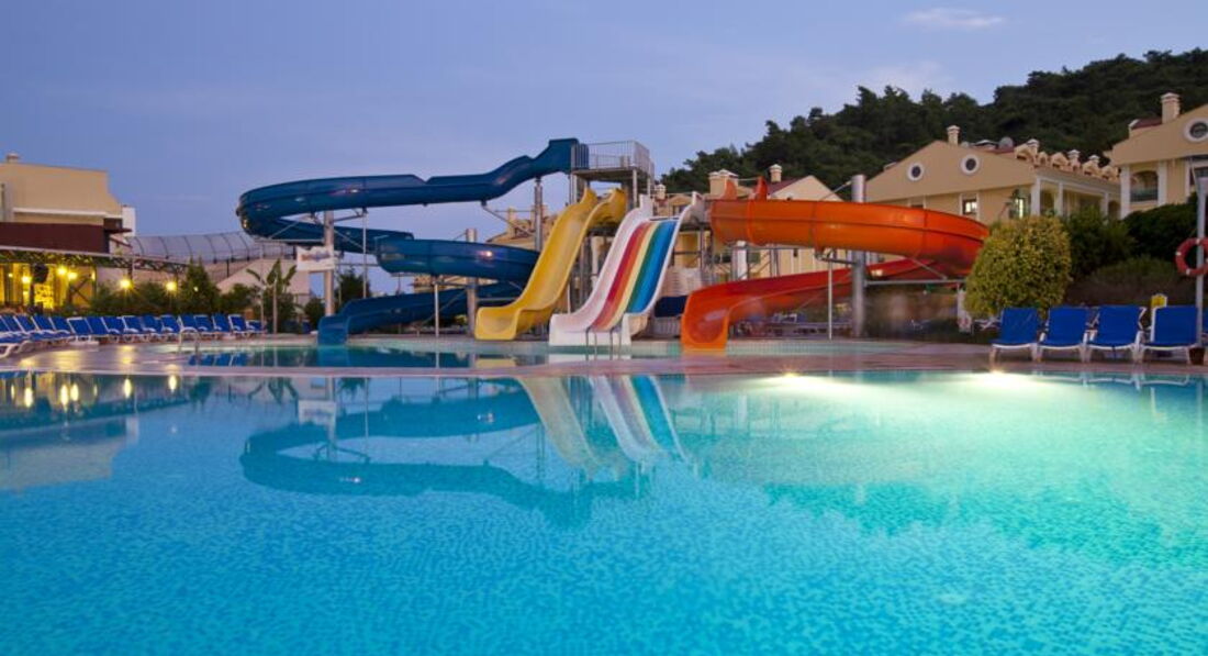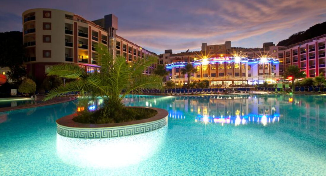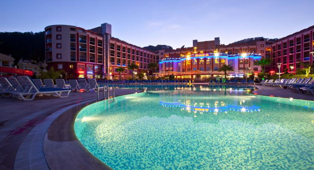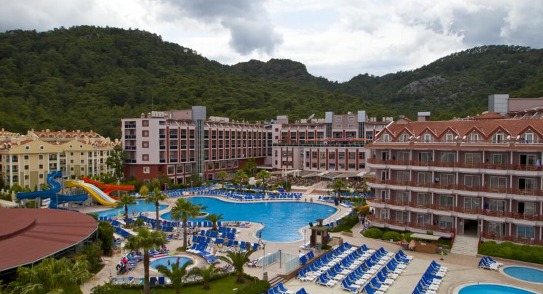 Всем добрый день!Хочу предупредить наших соотечественников -ВАМ ТАМ НЕ РАДЫ!!!!никто не хамит НЕТ-ВАС ТАМ ПРОСТО НЕ ЗАМЕЧАЮТ -ВЫ И ВАШИ ДЕТИ В ЭТОМ ОТЕЛЕ-пустое место !!!!отель на 95%заселен англичанами-мне с ними достаточно комфортно НО??если БЫ КО ВСЕ ОТНОСИЛИСЬ ОДИНАКОВО??Персонал не говорит на русском-поэтому будьте к этому готовы!У бассейна лежаков как в английском улье-все плотно друг к другу,горки детям понравились,ПИТАНИЕ -да оно ХОРОШЕЕ-и в отличие от русских отелей никто с тарелками не бегает ,все накладывают себе спокойно,потом ещё подходят-это единственный плюс для меня!!!НОМЕР УЖАСНО МАЛЕНЬКИЙ -между шкафом и кроватью реально 30см-вещи половину хранили в чемодане-ужасно неудобно,TV плоский-но канал только 1 и какой то ещё есть музыкальный,УБОРКА-как будто специально приходят убираться в 15.00-когда мы отдыхали после обеда в самое пекло-раньше всегда в отелях на море уходишь -пришёл-и уже видишь убрались-здесь НЕТ-2дня просила налить жидкое мыло в душе-говорила СКОРО-скоро ,полотенце для ног как будто специально забывали положить,туалетную бумагу приходилось самим брать у них в телеге-вот вроде мелочи-но так постоянно??САМОЕ УЖАСНОЕ ДЛЯ НАС ЭТО ПЛЯЖ -с детьми вы туда просто не дойдёте !!!!мы сходили один раз-а потом ходили на платный -до обеда 20лир -это три напитка в баре при пляже-и тогда ты можешь занять шезлонг-и так же 20лир после обеда--650ру/день умножить на 10дней=6500руб -это самое противное-ехать в пятерку и ещё за пляж такие деньги отдавать!!!Менеджеры тур агенст должны предупреждать ВАС СРАЗУ-до вашего пляжа 35мин по невыносимому пеклу с детьми-ВЫ ГОТОВЫ К ЭТОМУ?????я лично нет-но меня обманули ,менеджер сказал мин 10-15???поэтому вместо двух экскурсий мы потратились на пляж-что не в ходило в наши планы!!Очень приятный парень Рико и Ирина-тур агенство как перейдёте по прямой от отеля дорогу-на углу ,природа Мармарисе прекрасны-мы там уже лет 10отдыхаем,но так "попали"первый раз??ИТАК-если вы готовы 35мин по жаре шагать к вашему бесплатному и сидеть среди англичан как второй сорт-вам сюда